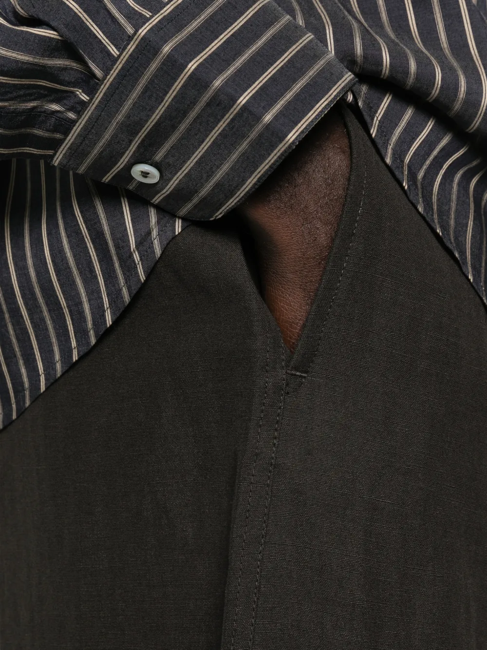 Угольного цвета, укороченные, с кулиской и двумя боковыми карманами с разрезами