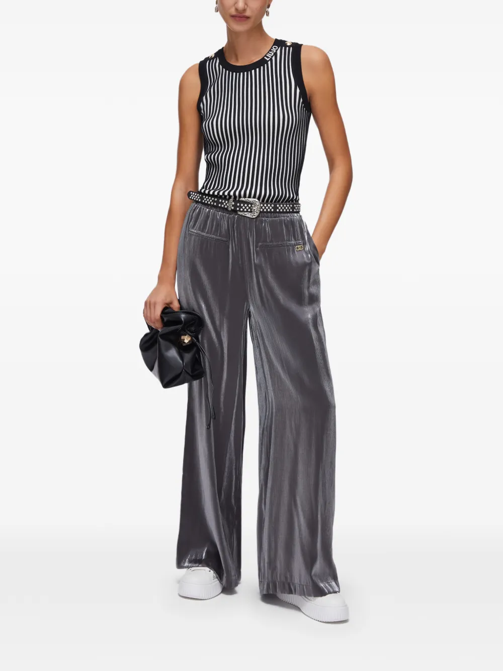 Серый цвет, эластичный пояс, расклешенные штанины, боковые карманы