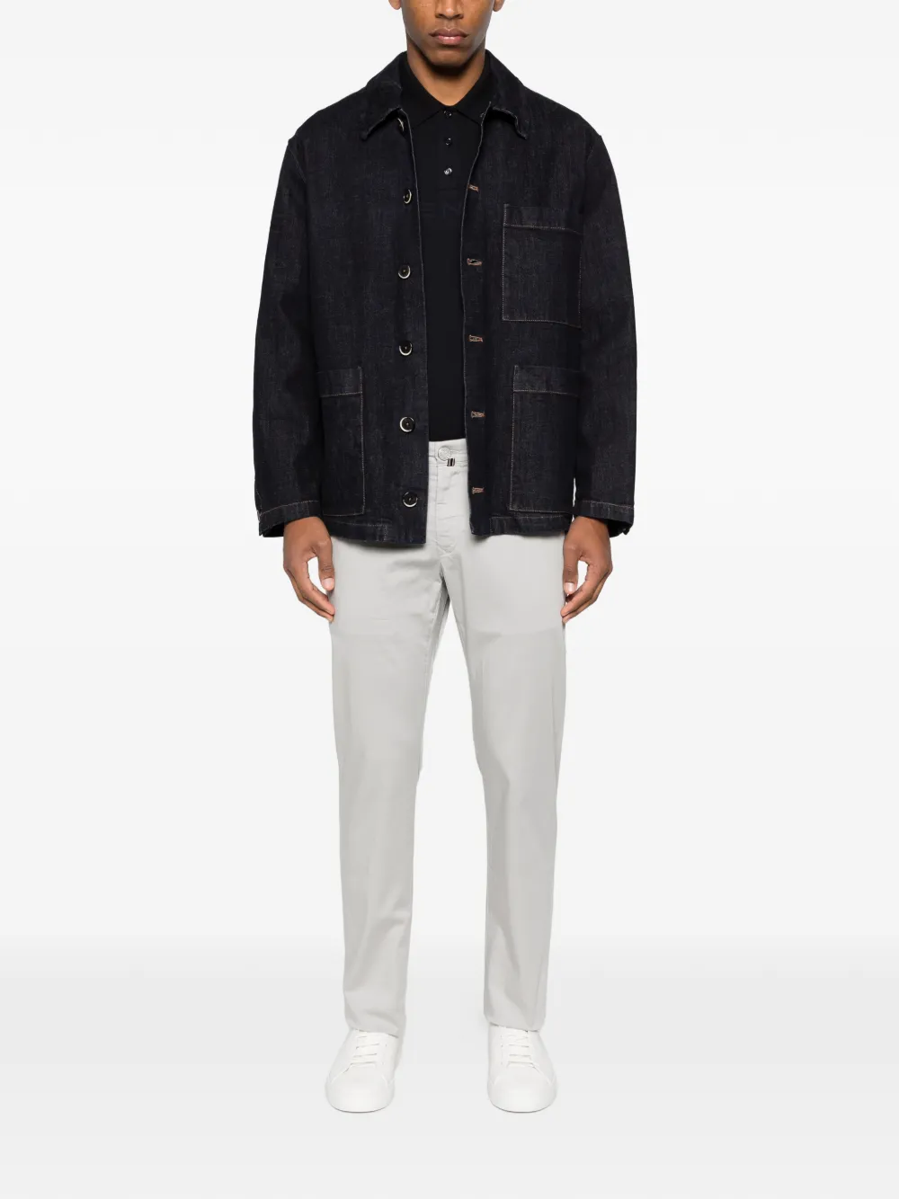Серые шлевки, прорезные карманы сзади