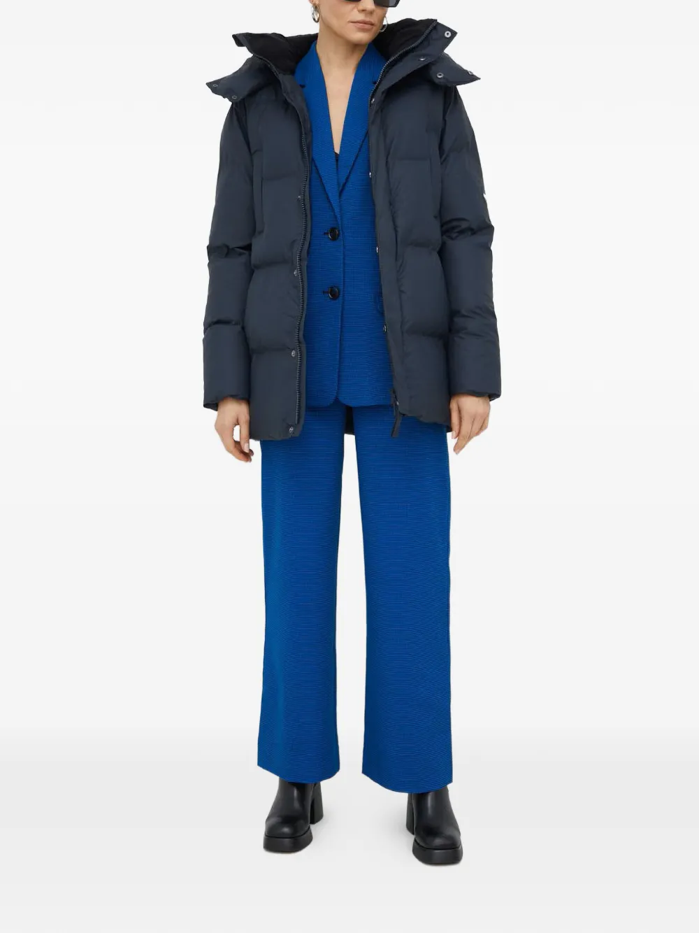 Ярко-синий узор «гусиная лапка», прорезные карманы