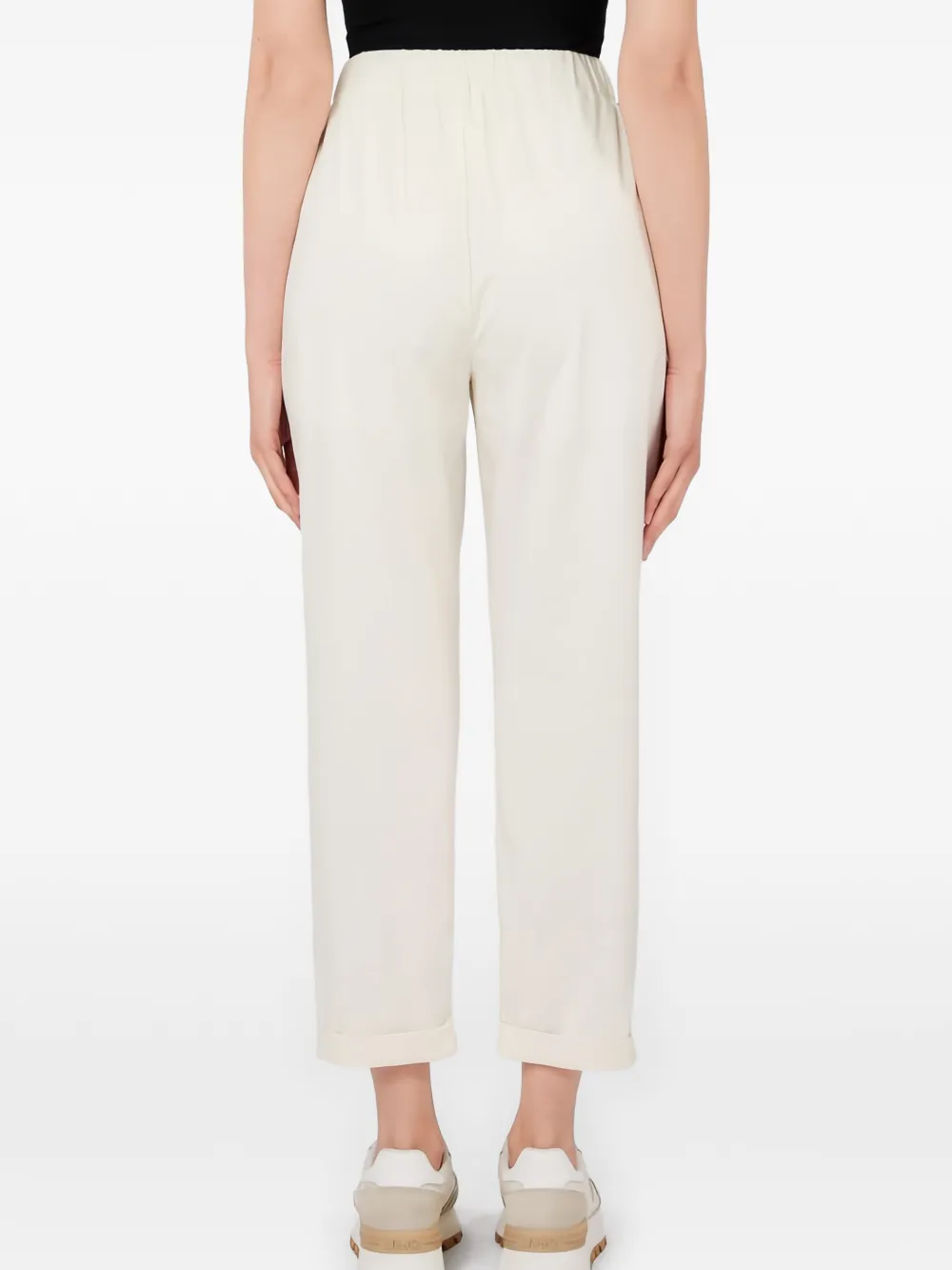 Белые брюки с манжетами, пуговицами, эластичным поясом и боковыми карманами