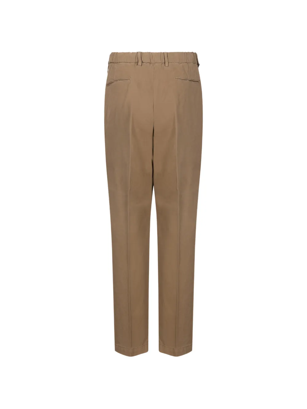 Бежевый цвет, застегивается на пуговицы, шлевки для ремня, эластичный задний пояс
