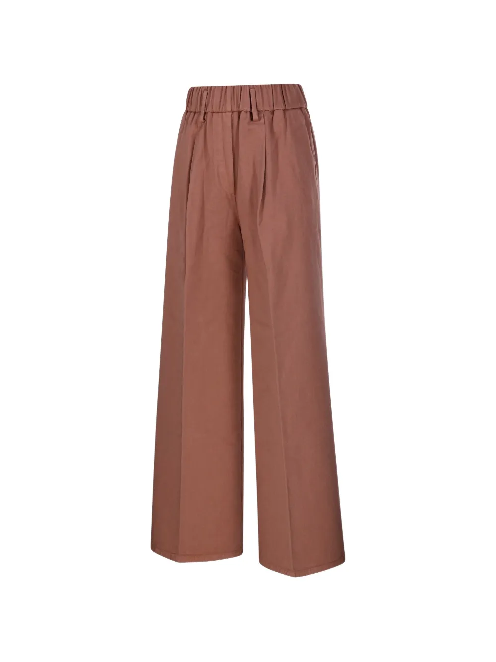 Коричневые широкие брюки с задними накладными карманами и плиссированными деталями