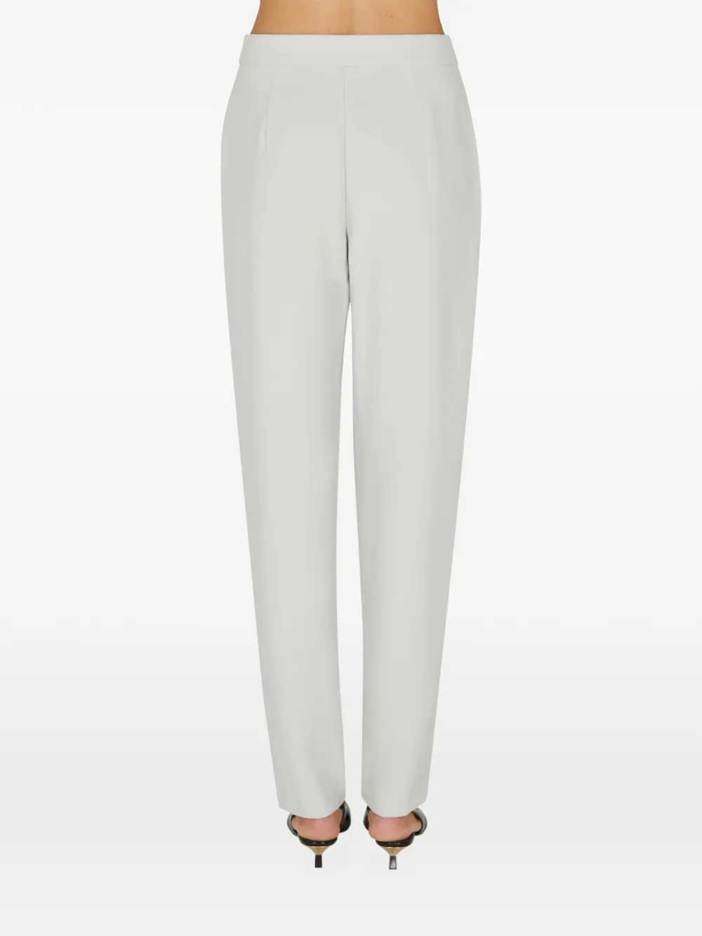 Светло-серый цвет, плиссированные детали, боковые карманы, шлевки для пояса, застежка на молнии