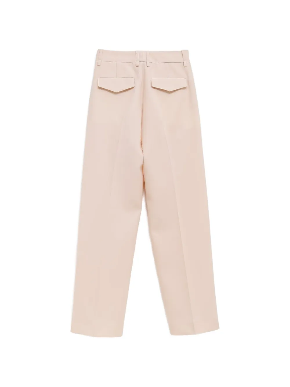 Светло-розовый цвет, клапанные карманы, шлевки для пояса, скрытая застежка, прямой крой брючин, стрелки