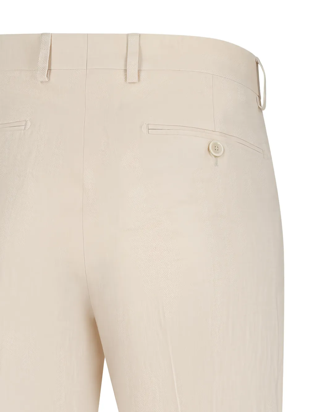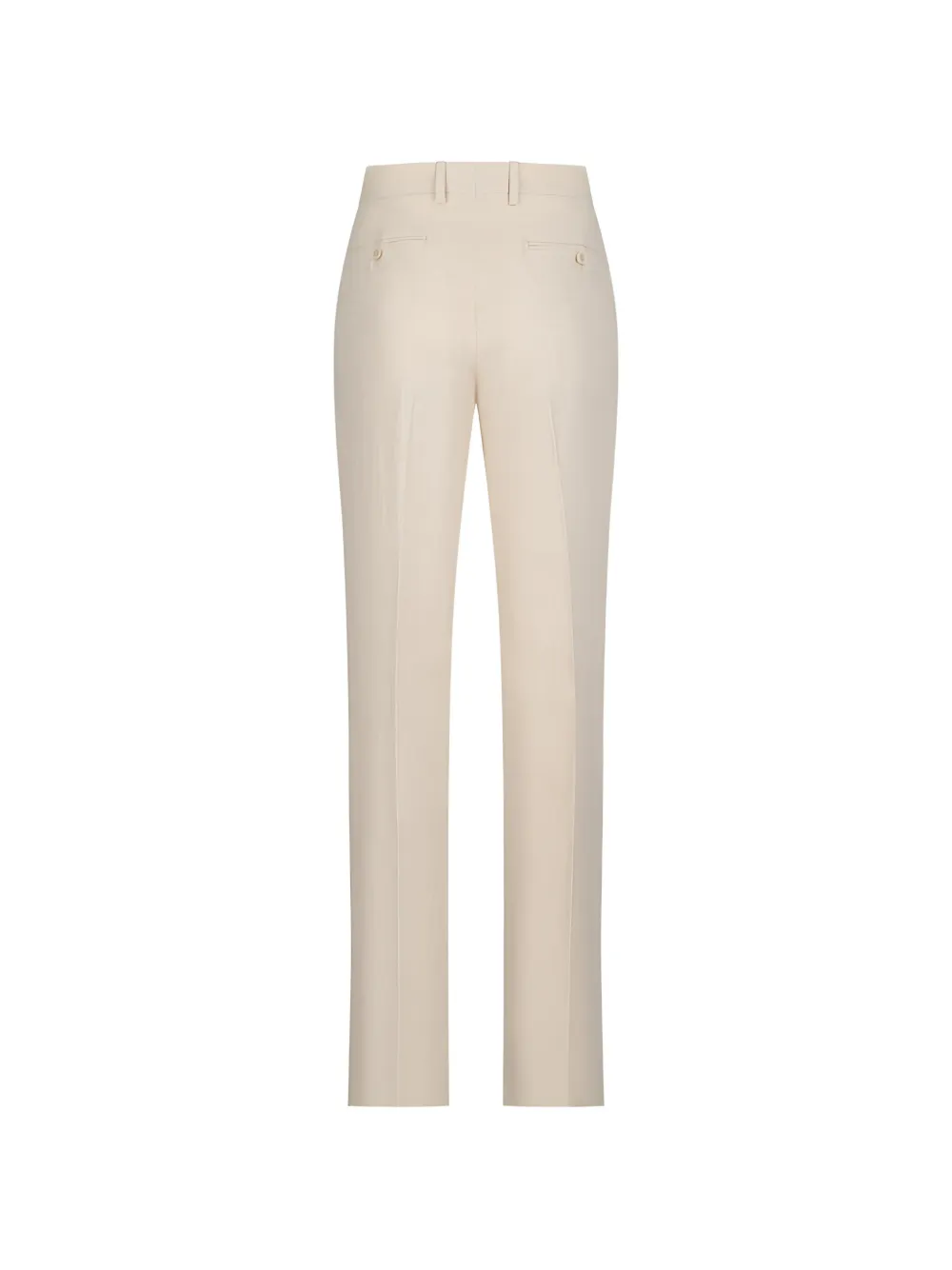 Бежевые, застегиваются на пуговицу, шлевки для ремня, задний прорезной карман, прямые брючины, скрытая ширинка