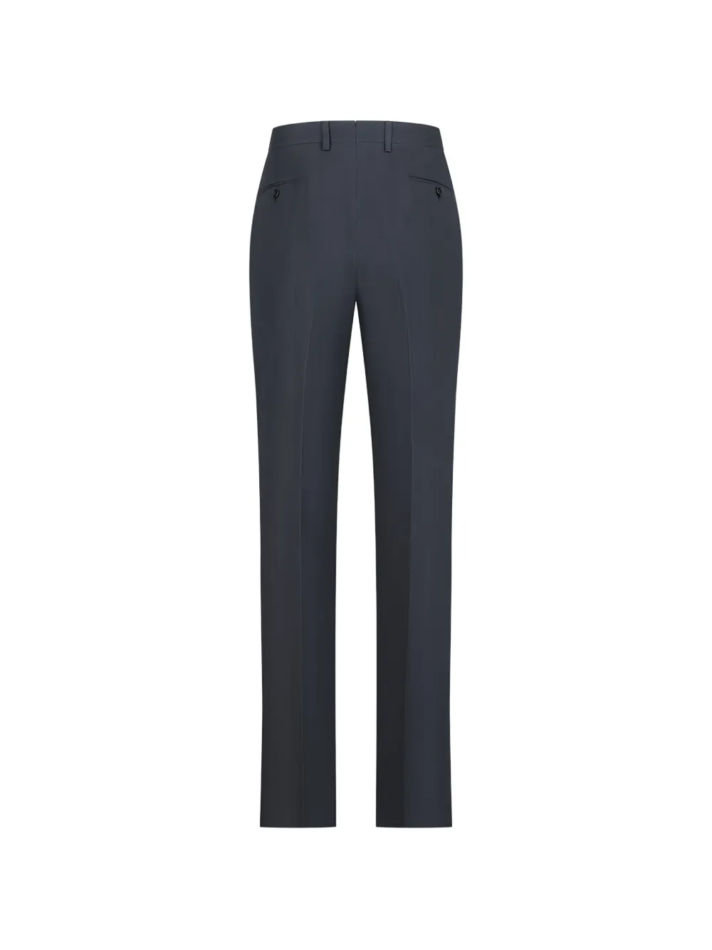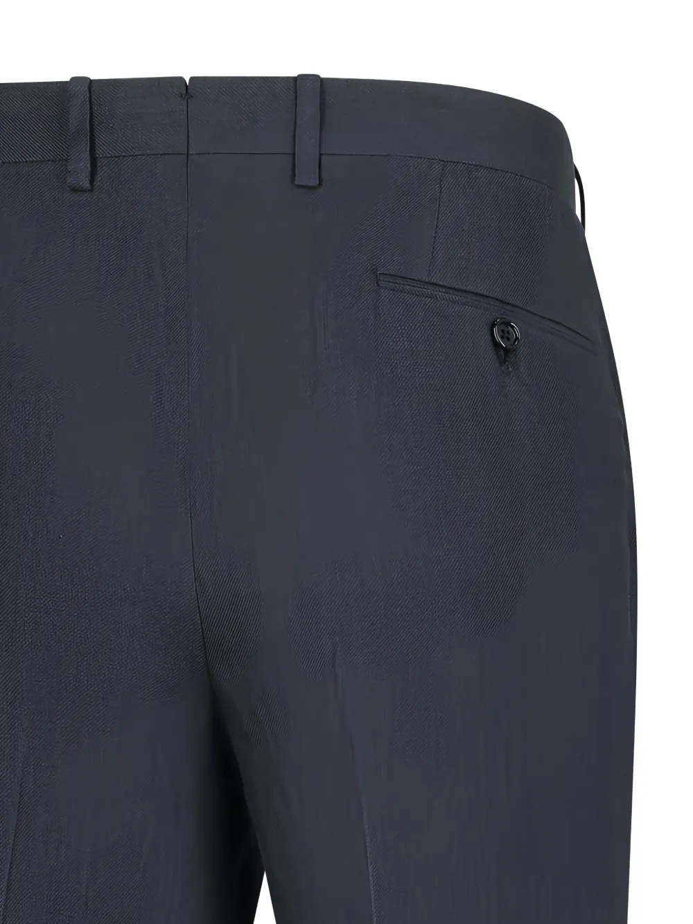 Темно-серые шлевки для ремня, застежка на пуговицу, задний прорезной карман, прямой крой брючин, стандартная посадка