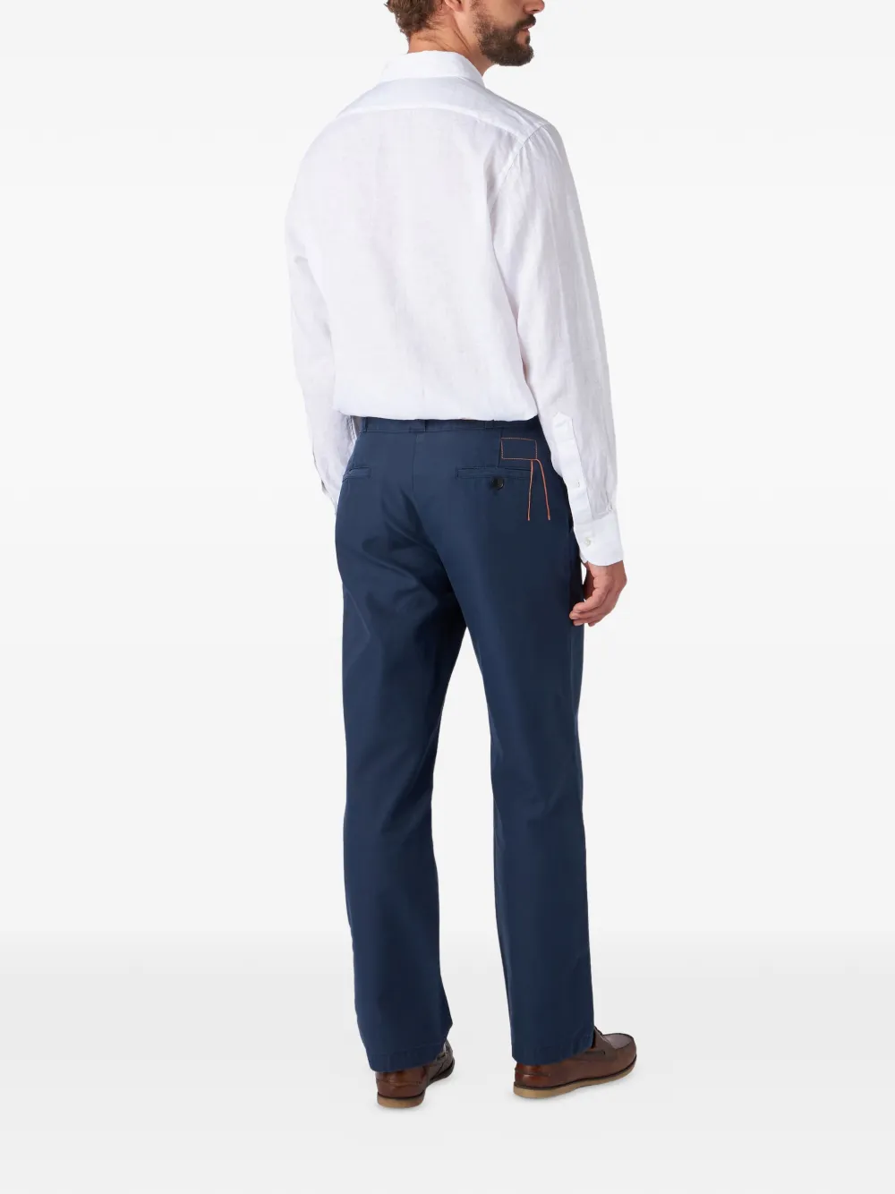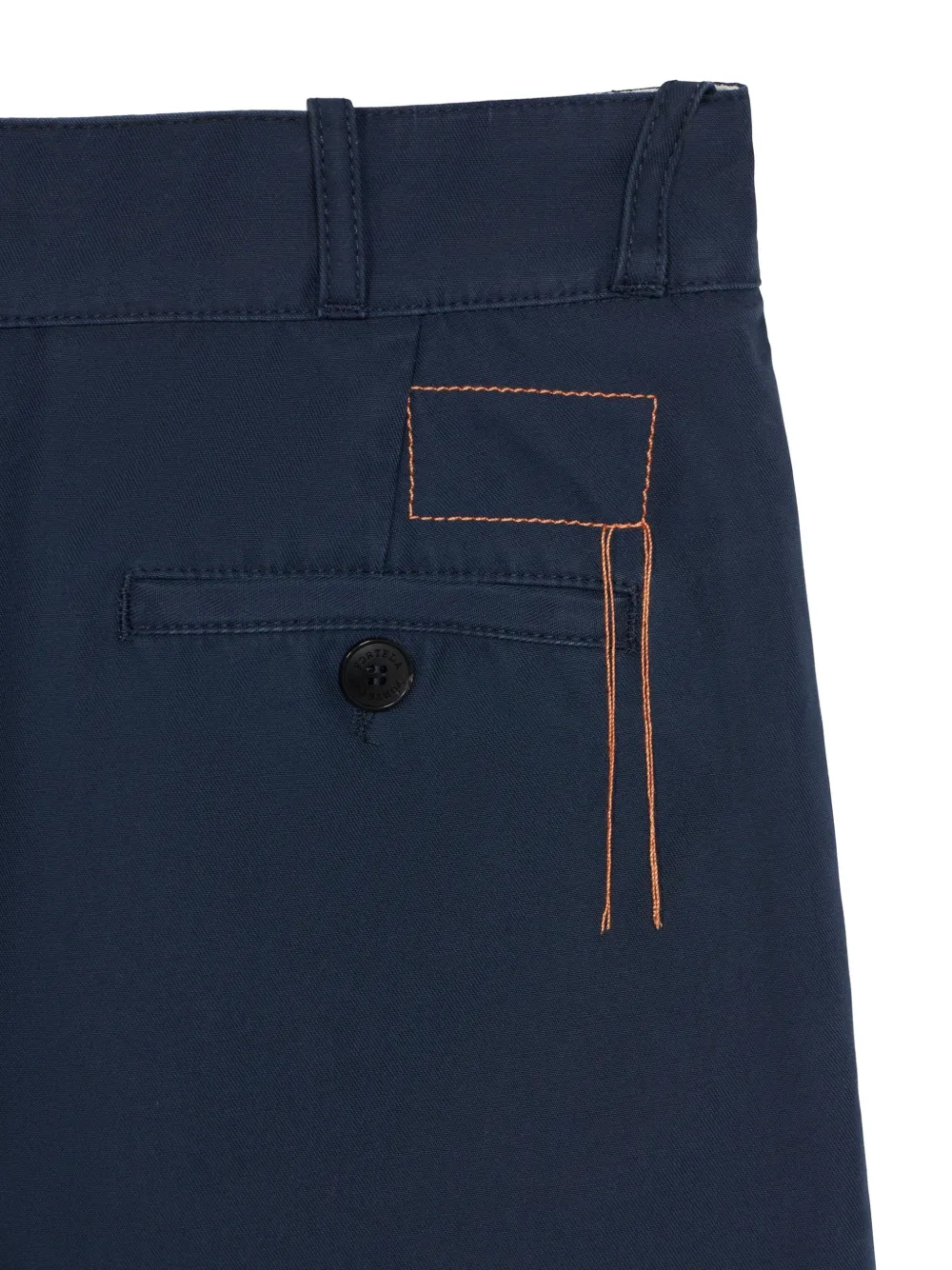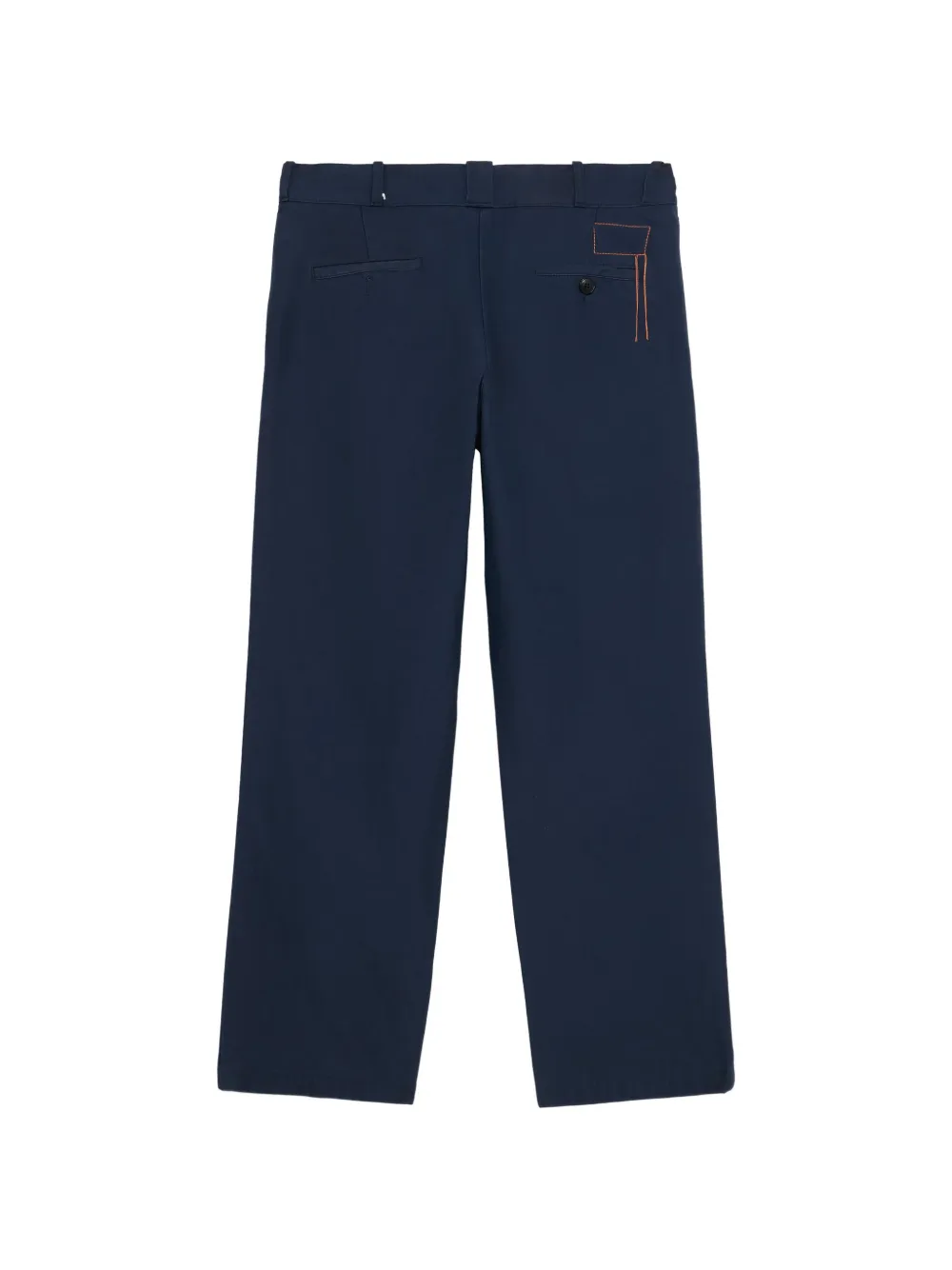 Синий задний врезной карман, застежка на пуговицу и молнию