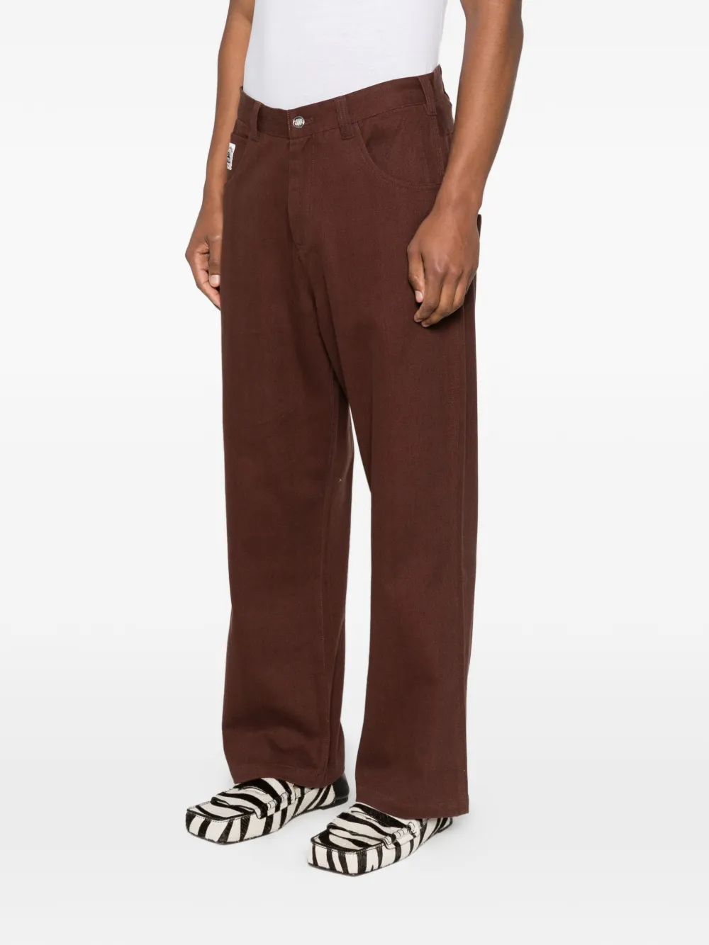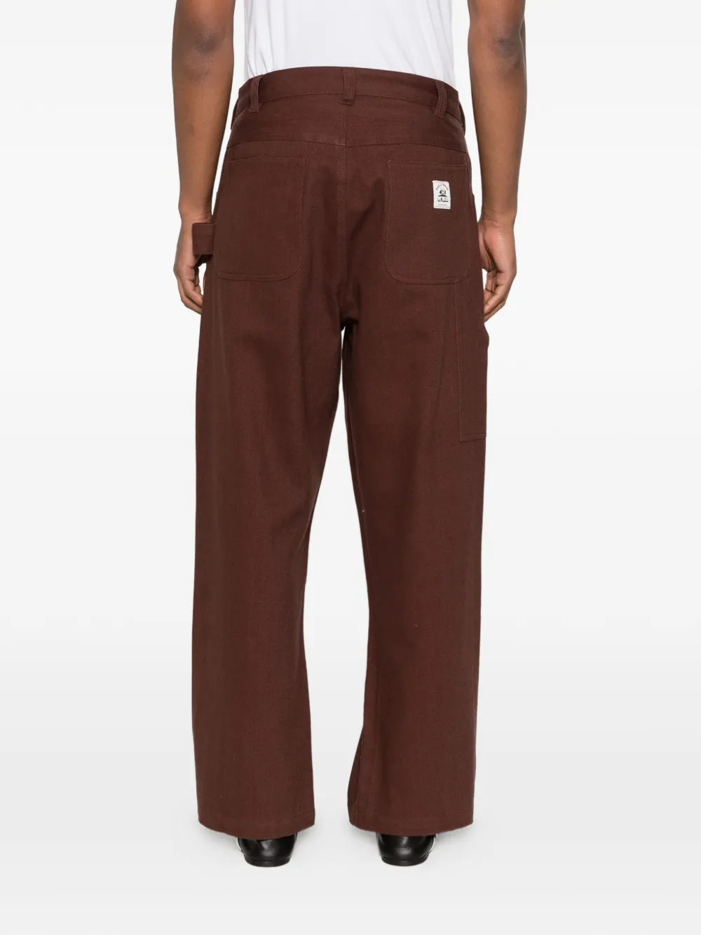 Коричневые прямые брюки с логотипом, накладными карманами и шлевками для ремня