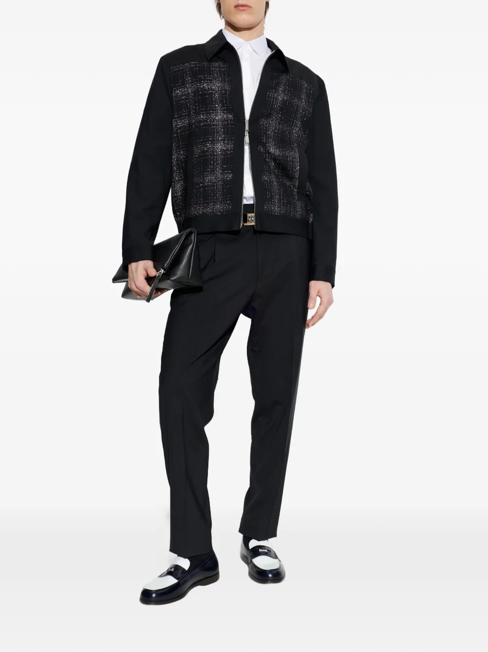 Черная табличка с логотипом, прорезные карманы, шлевки для ремня, застежка на молнию