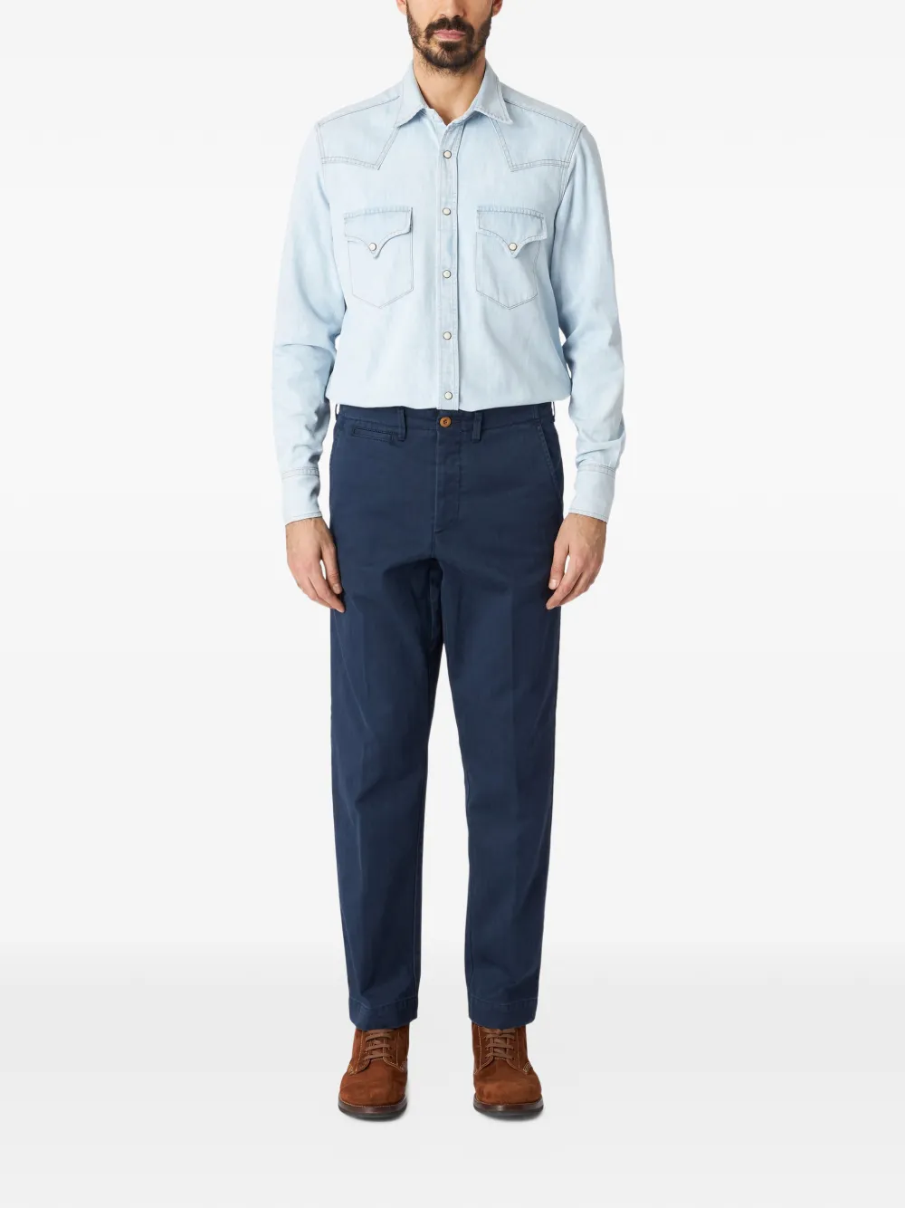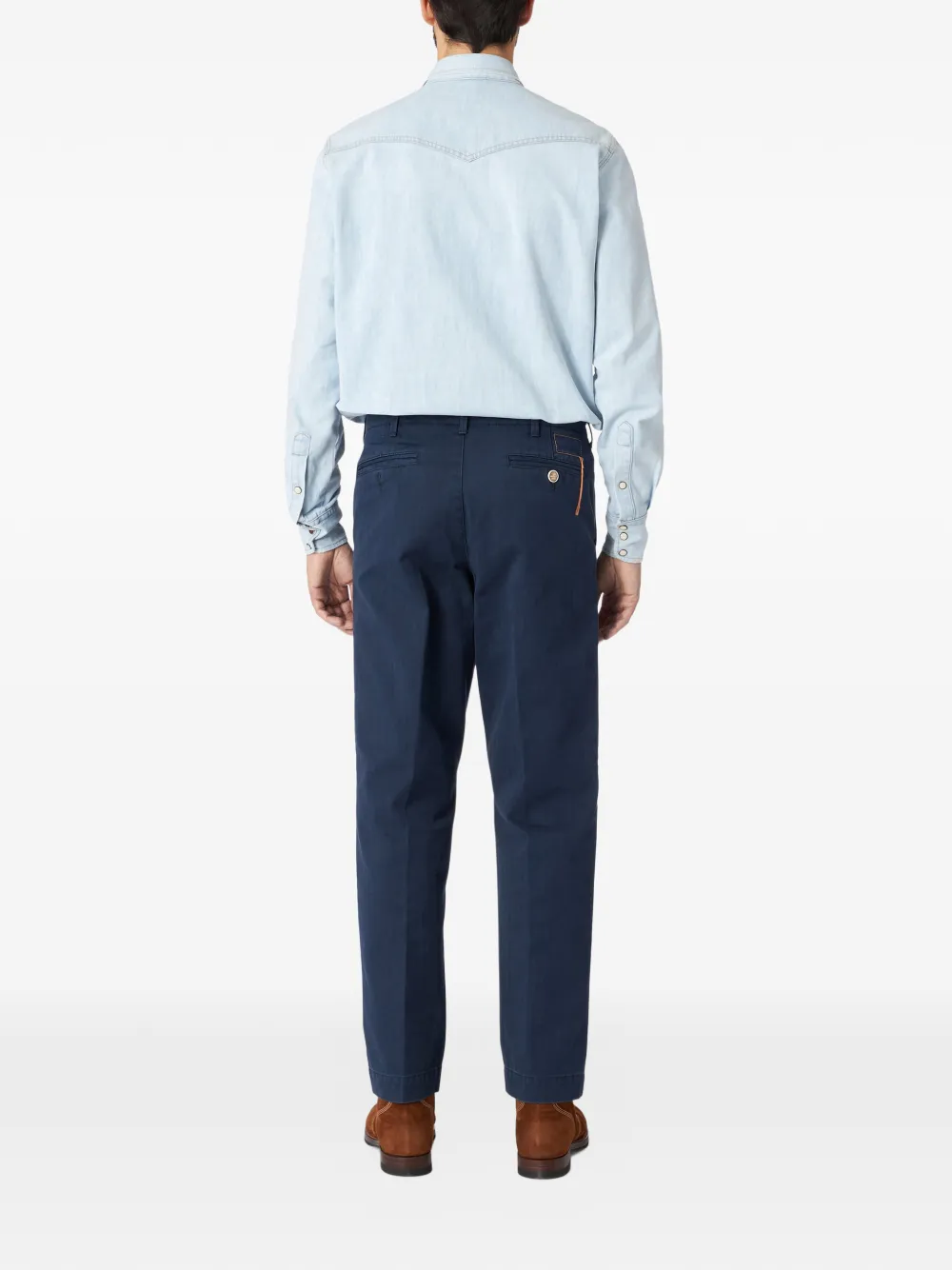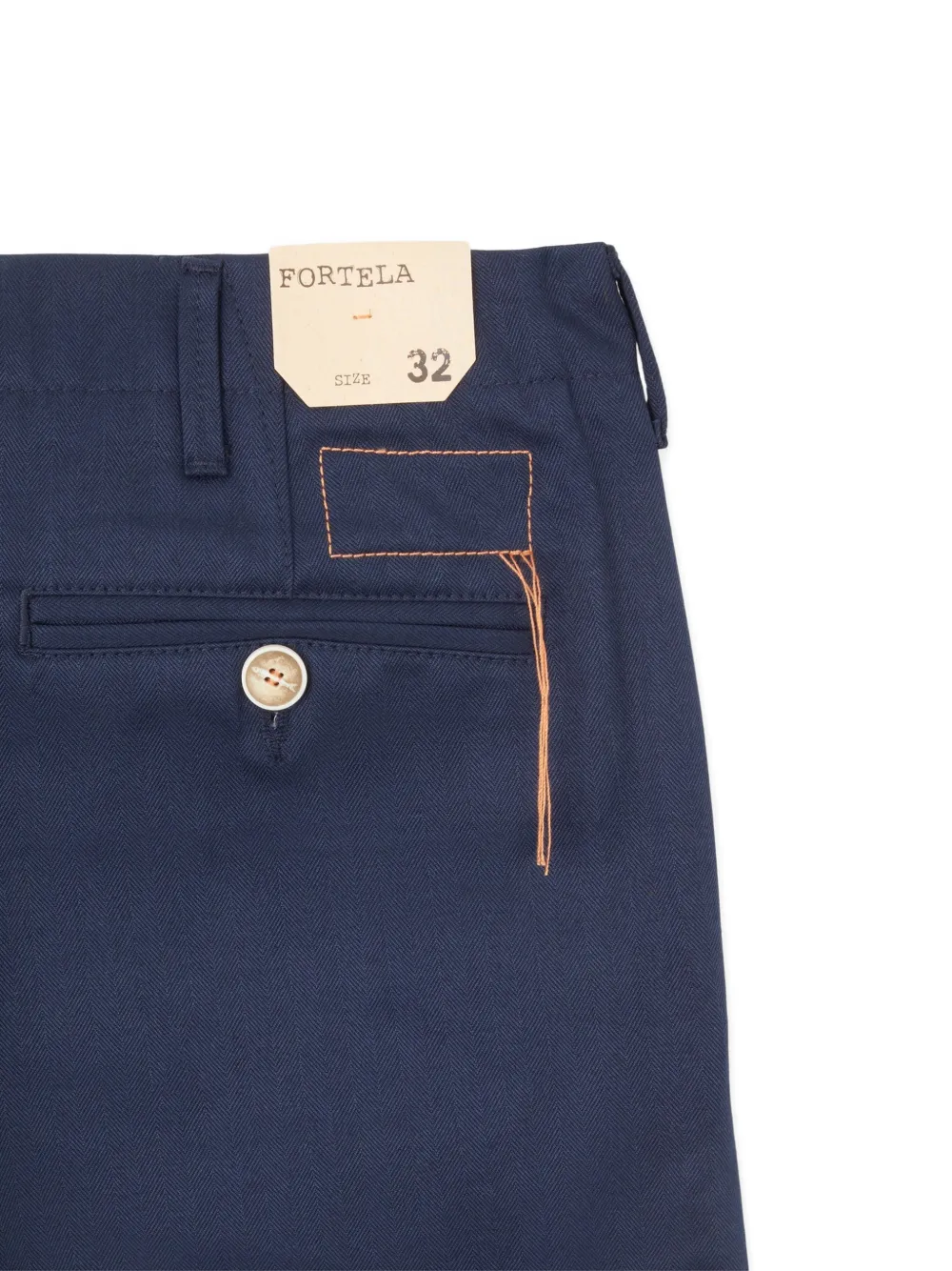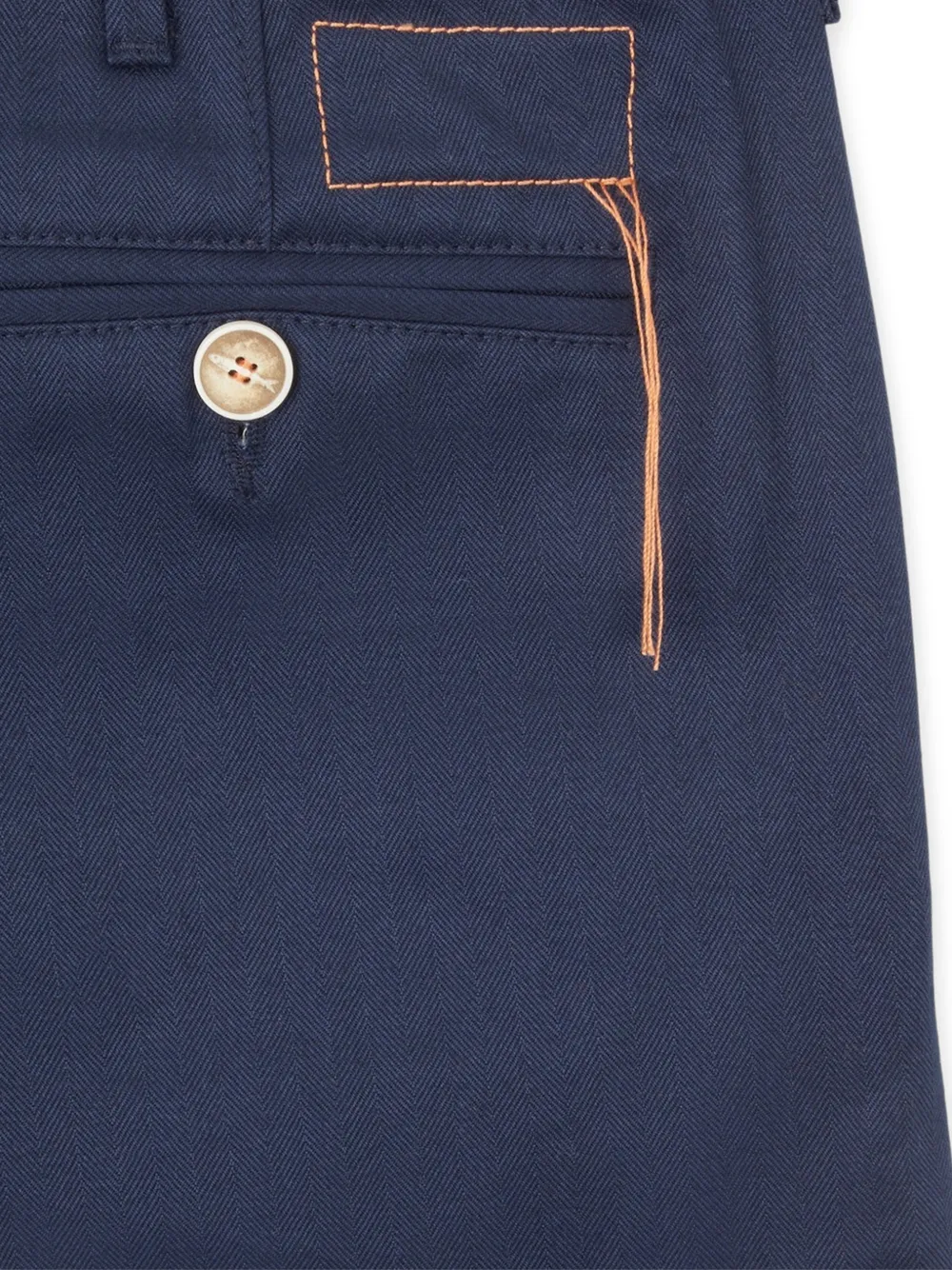 Синий елочный узор, закругленные боковые карманы, карман для часов, застежка на пуговицы