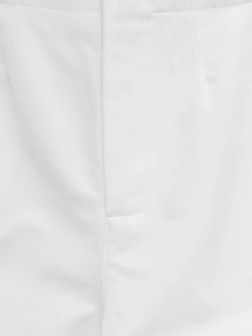 Белые прямые брюки, застежка на пуговицу, шлевки для ремня, прорезной задний карман, боковые карманы в швах