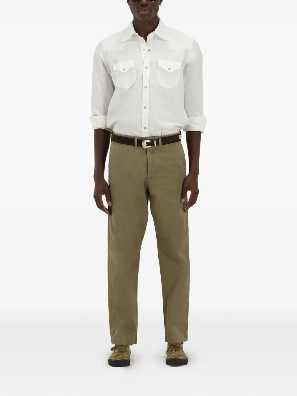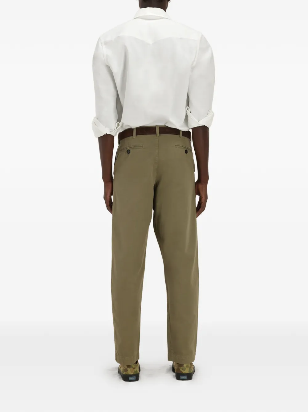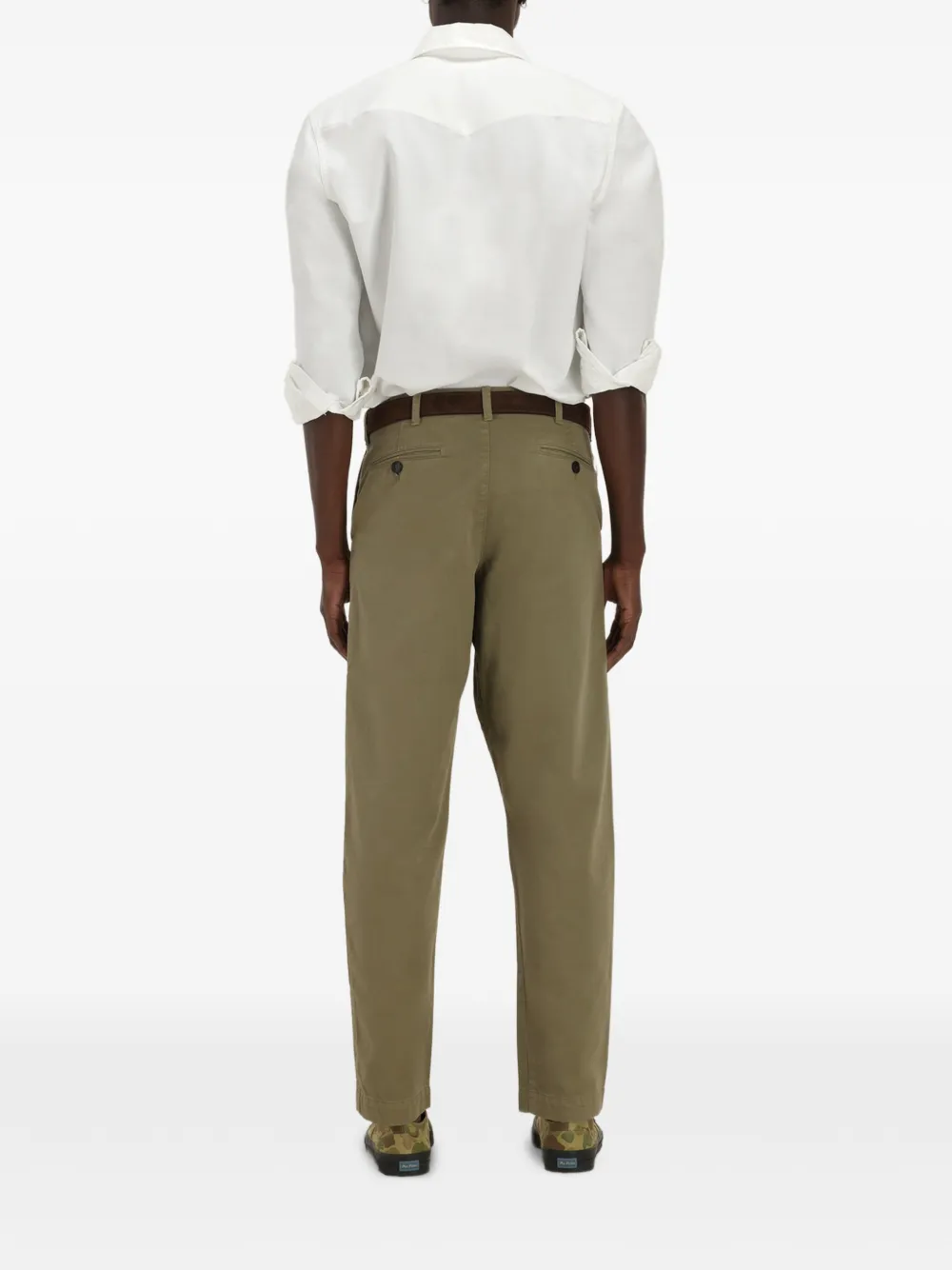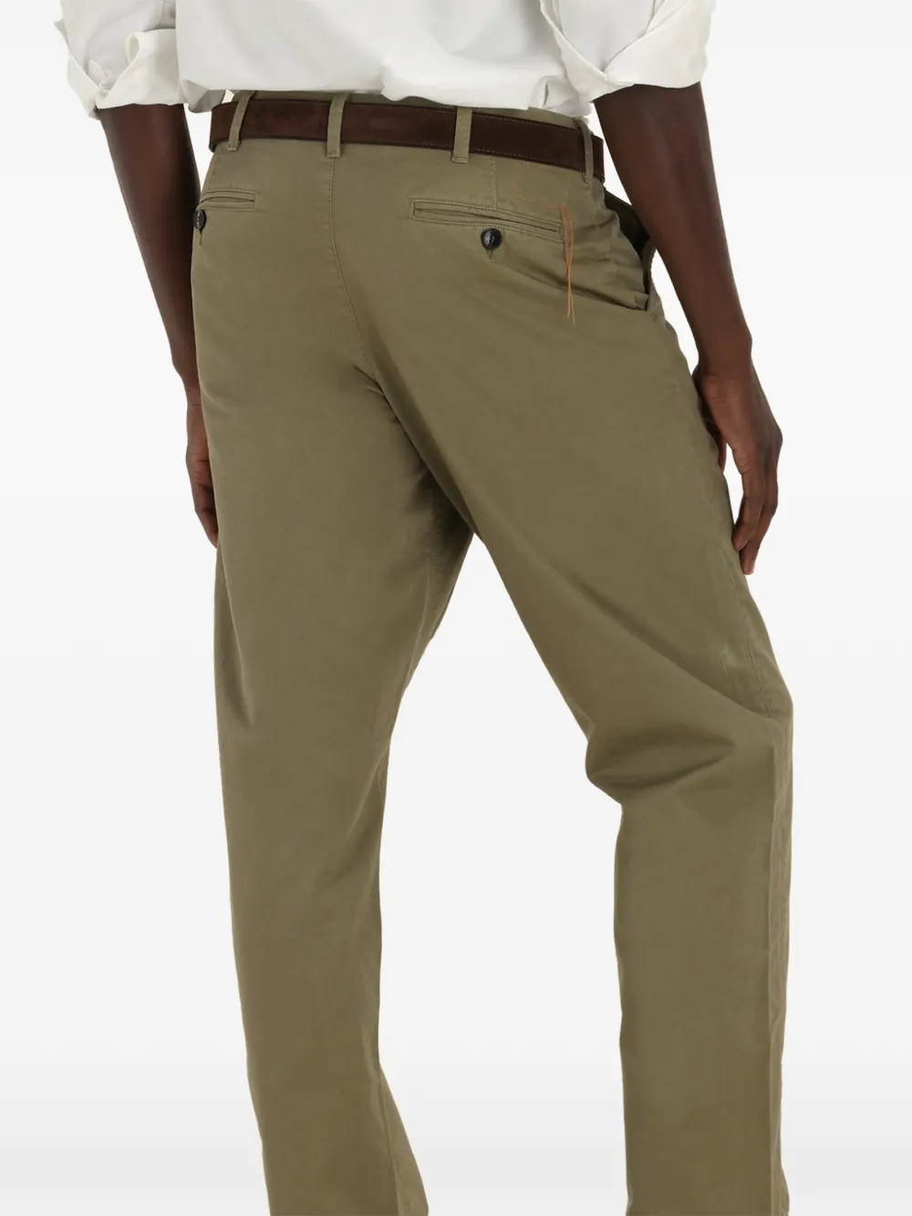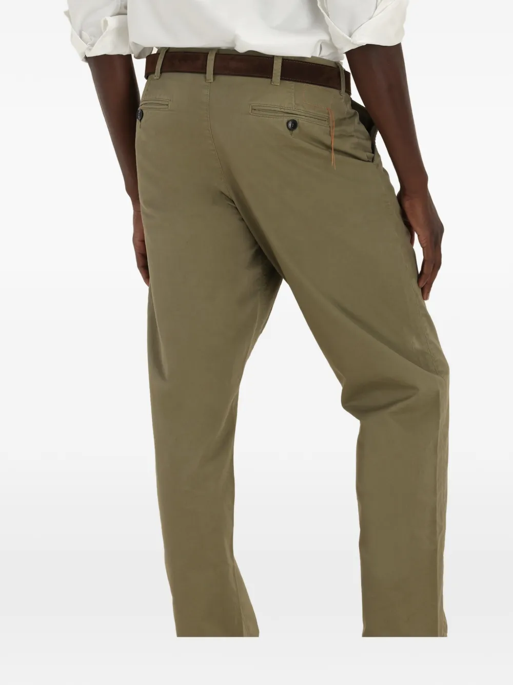 Прямые брюки цвета шалфея с карманом для часов, задними прорезными карманами, застежкой на пуговицу и шлевками для ремня