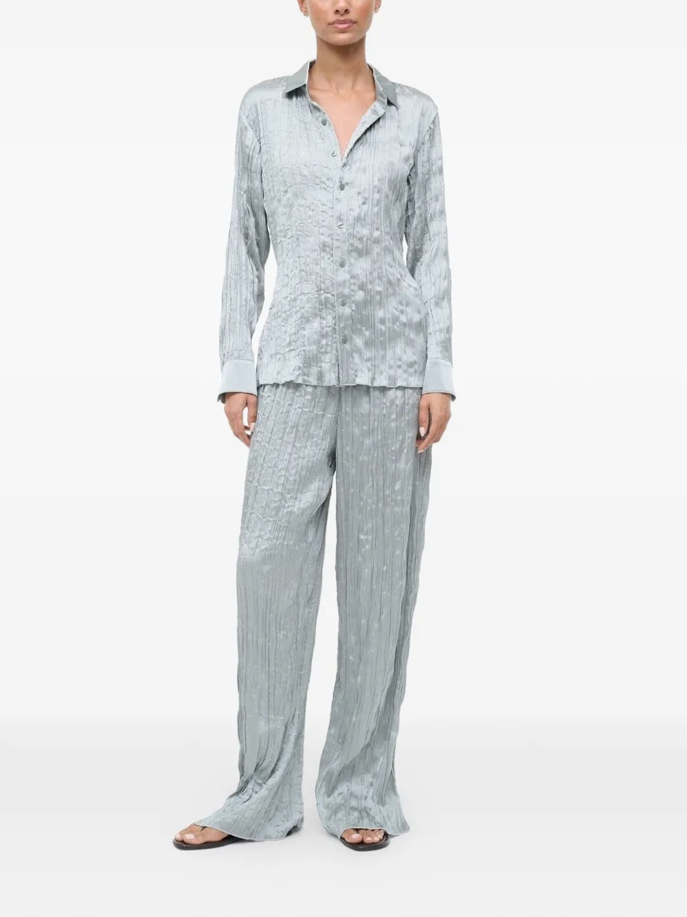 Серебристого оттенка, плиссированная фактура, эластичный пояс, стандартный крой