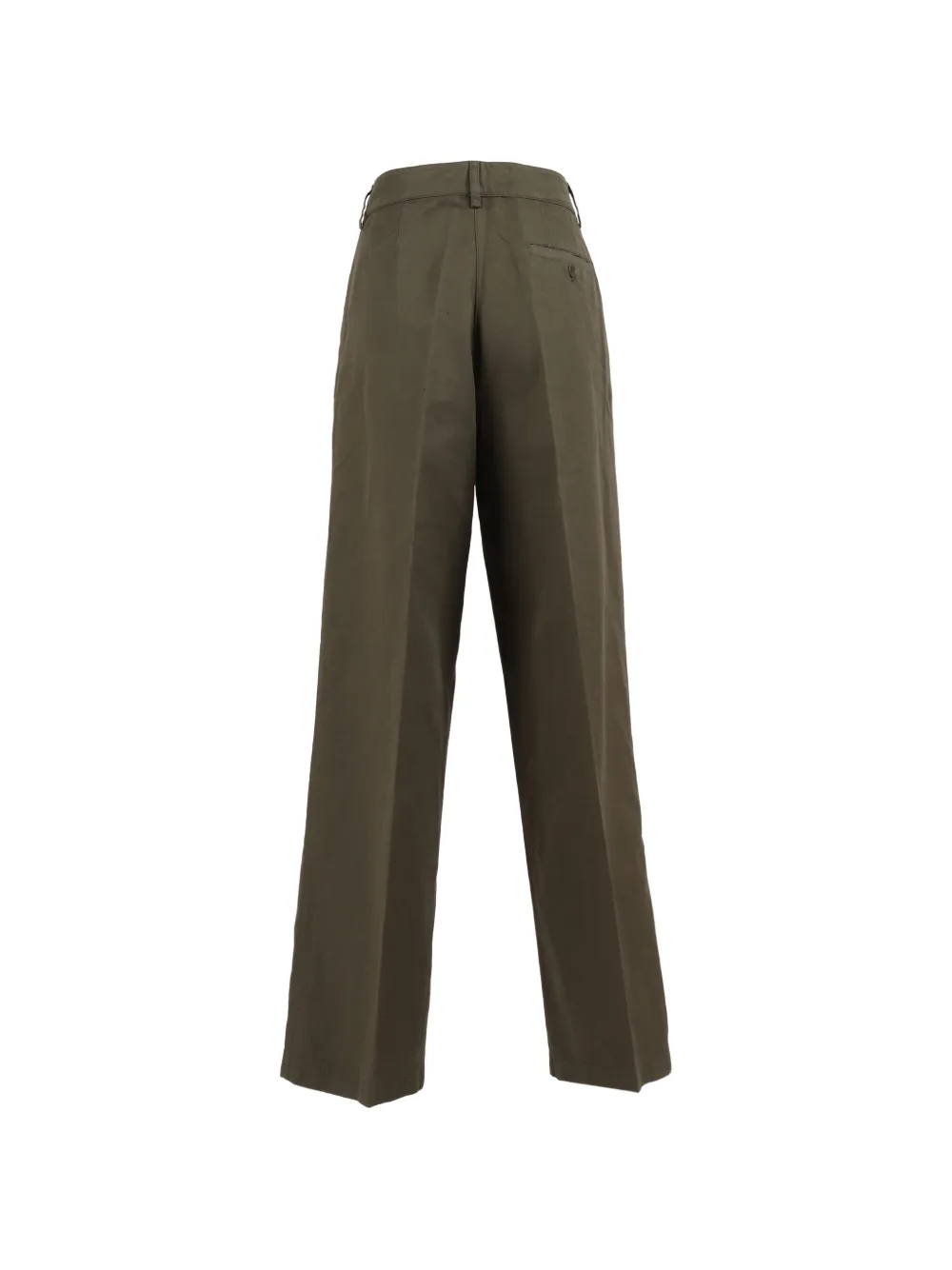 Оливково-зеленые, застежка на пуговицы, шлевки для ремня, передние карманы, задний карман, прямые брючины