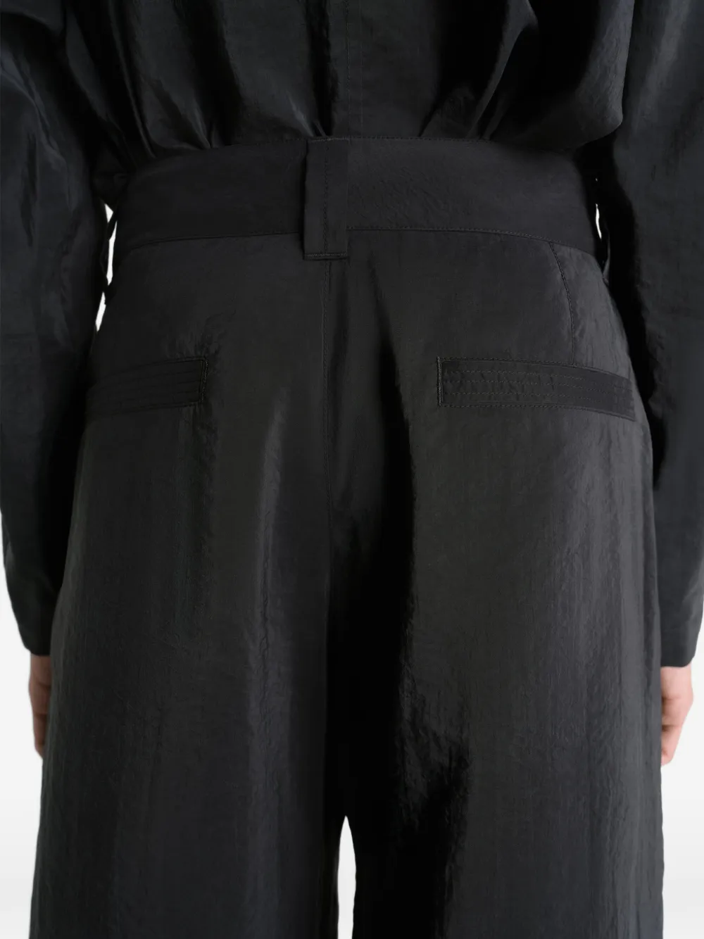 Черные шлевки для ремня, прямые штанины, боковые карманы, задние прорезные карманы
