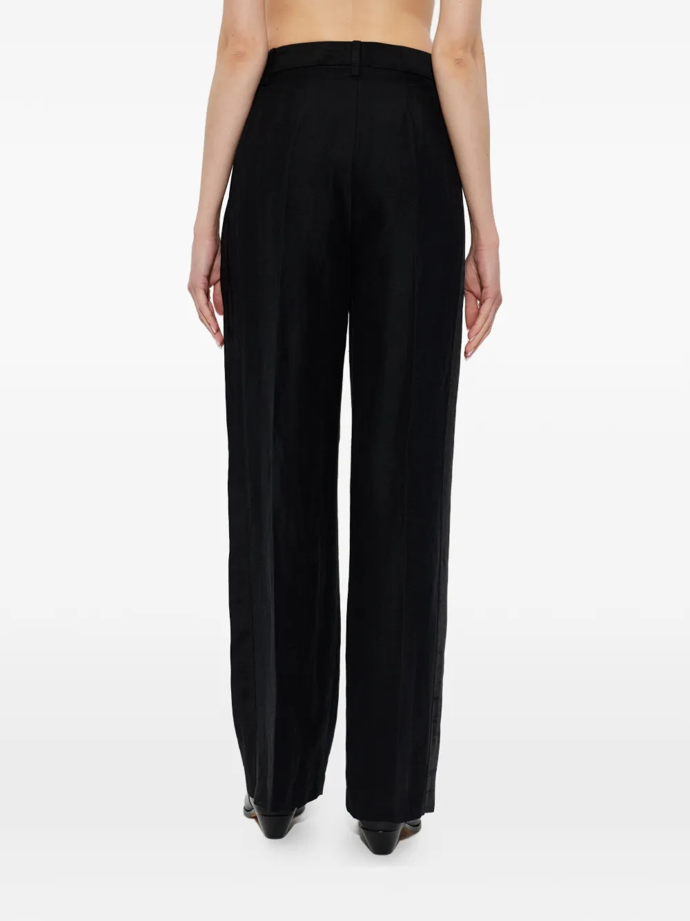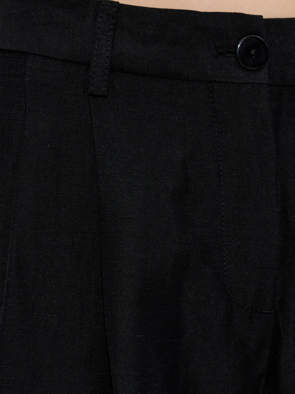 Черные, застегивающиеся на пуговицу, шлевки для ремня, складки спереди, прямые брюки
