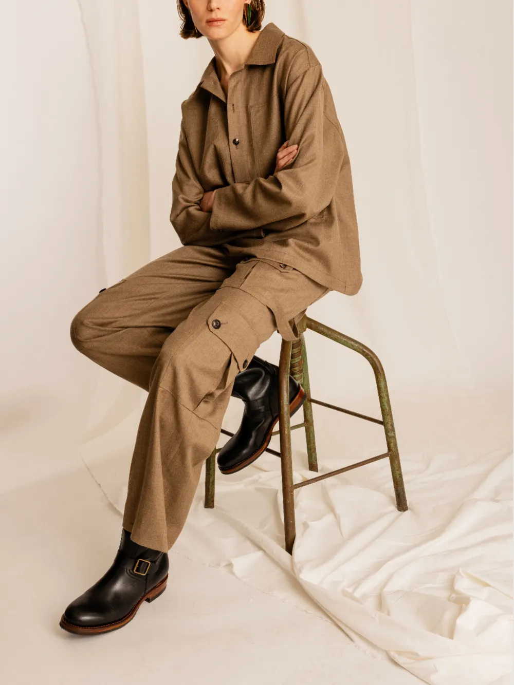 Коричневый цвет, накладные карманы, шлевки для пояса