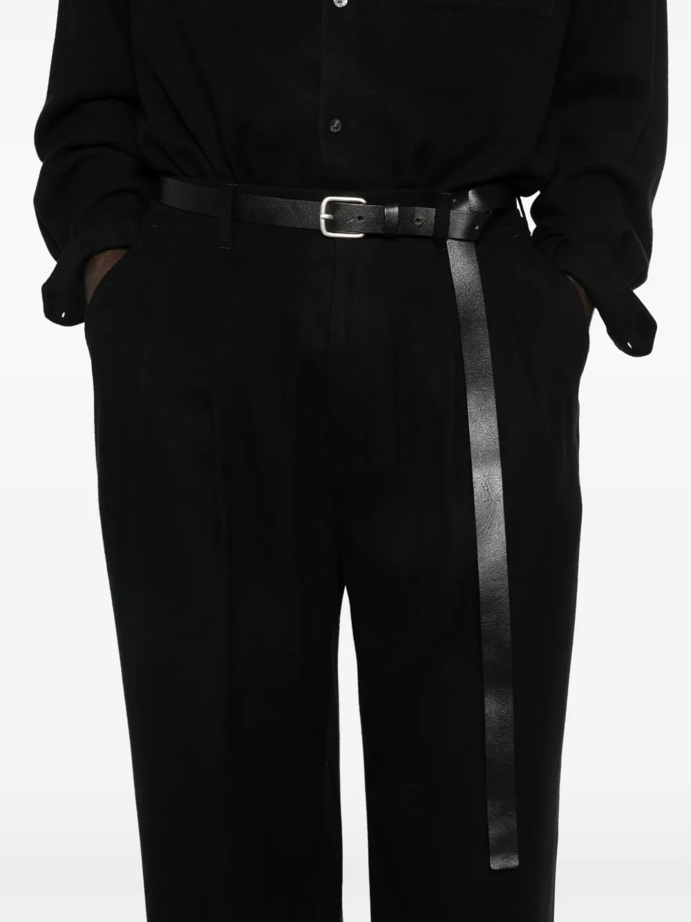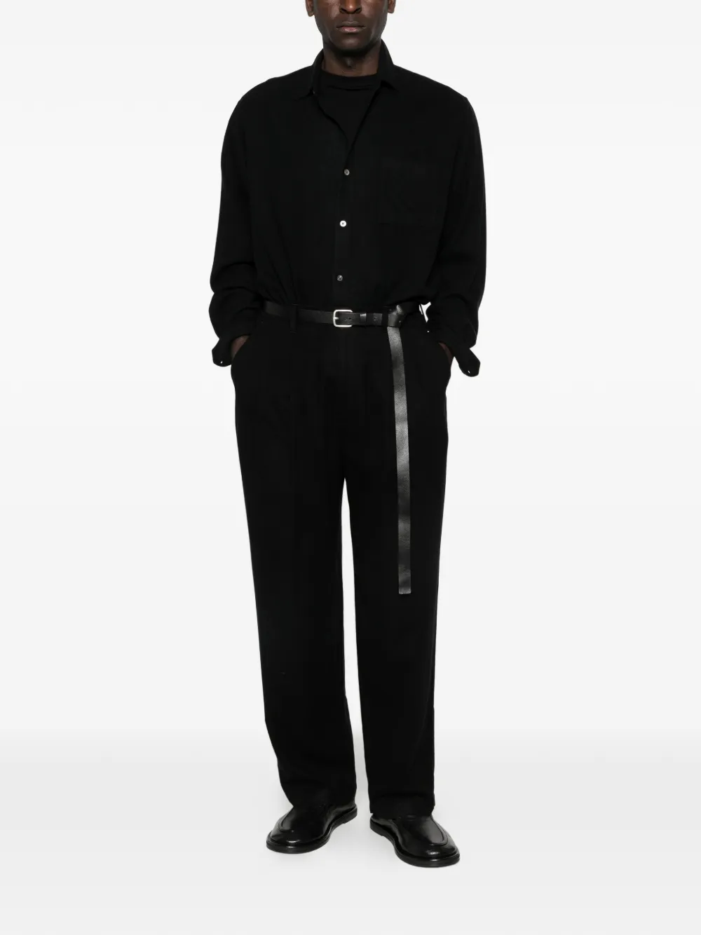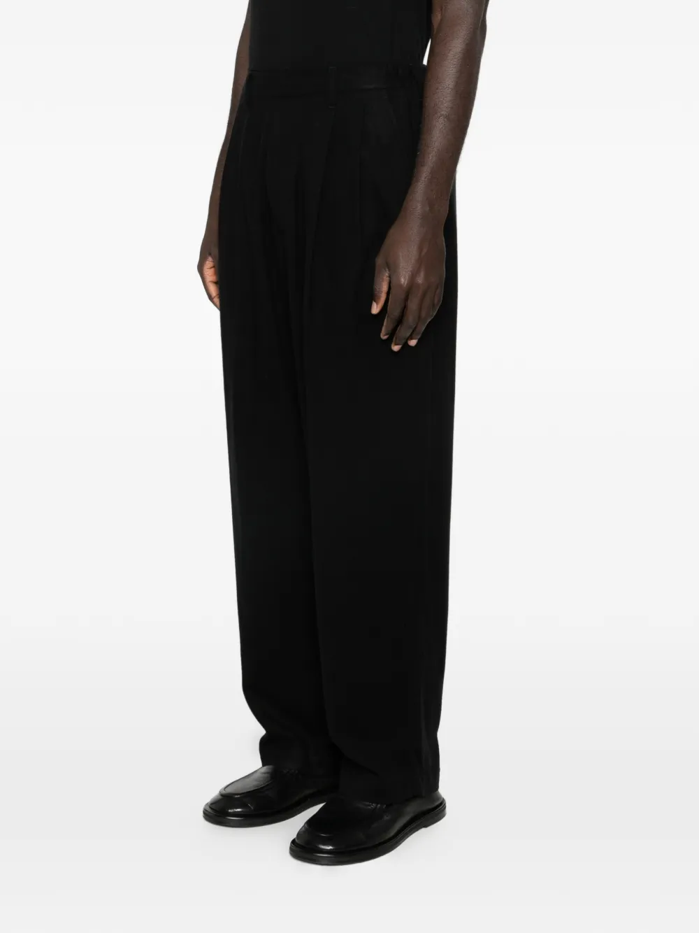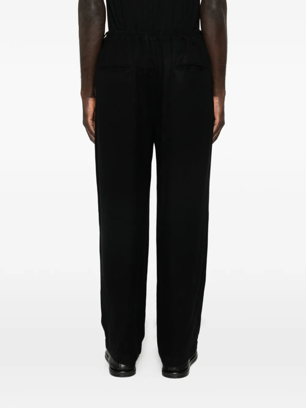Черный цвет, эластичный пояс, защипы спереди, боковые прорезные карманы, задние прорезные карманы