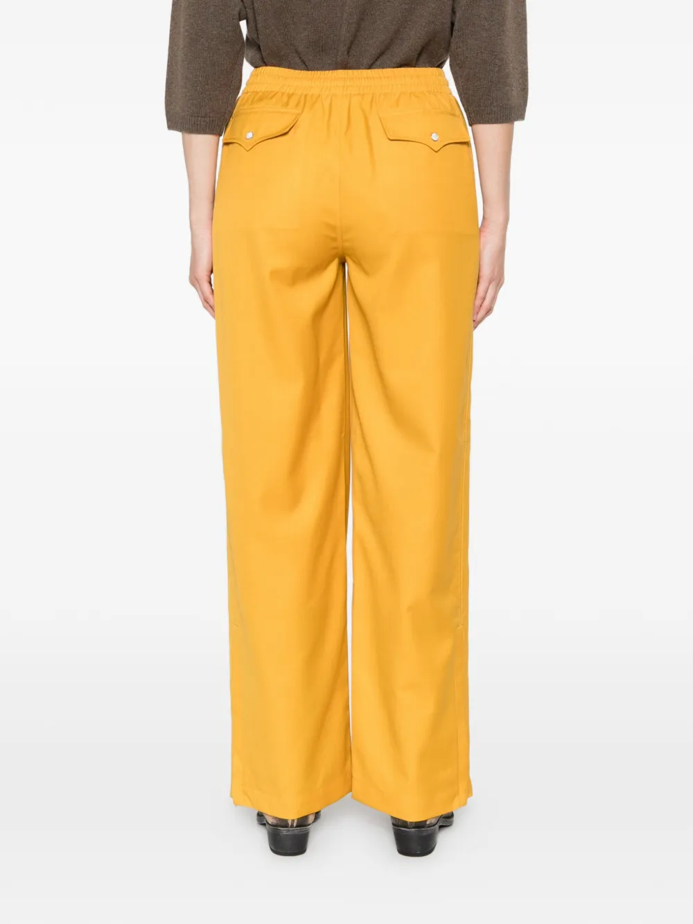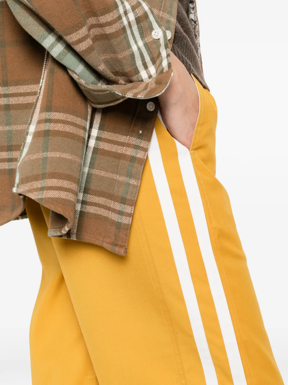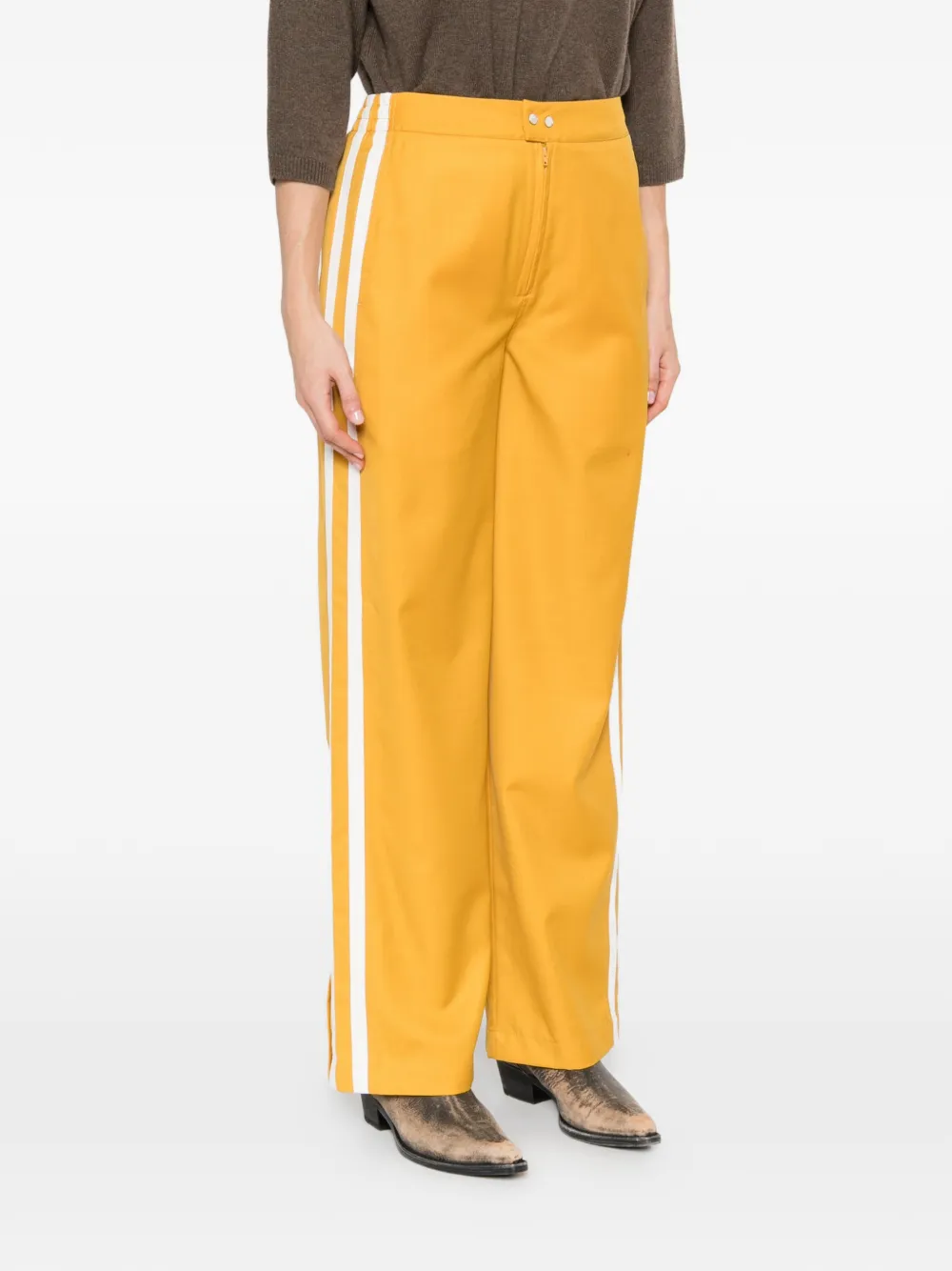 Белые брюки цвета календулы с полоской, двумя пуговицами спереди, застежкой-молнией, широкие прямые брюки