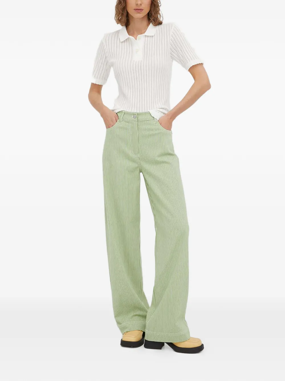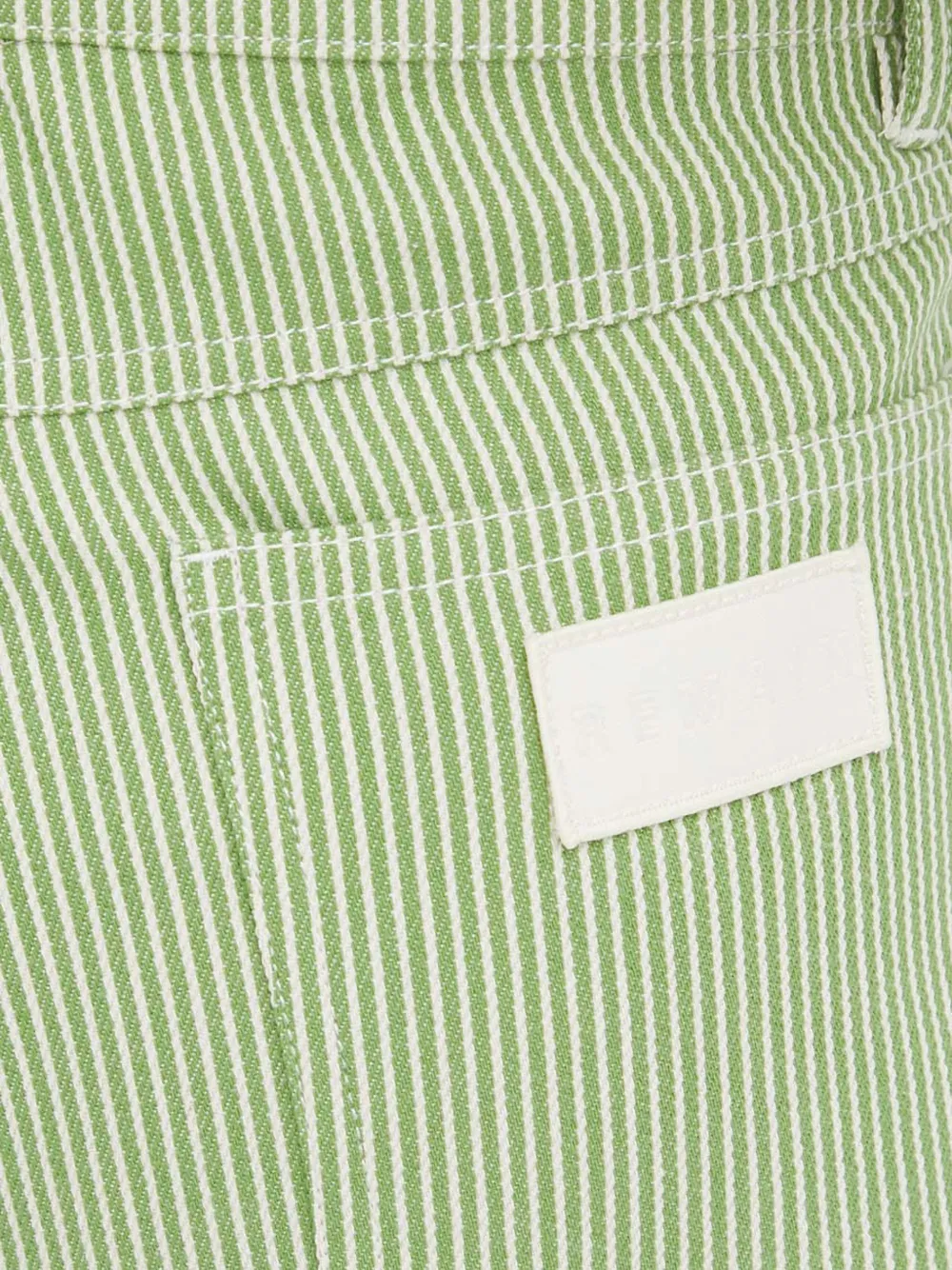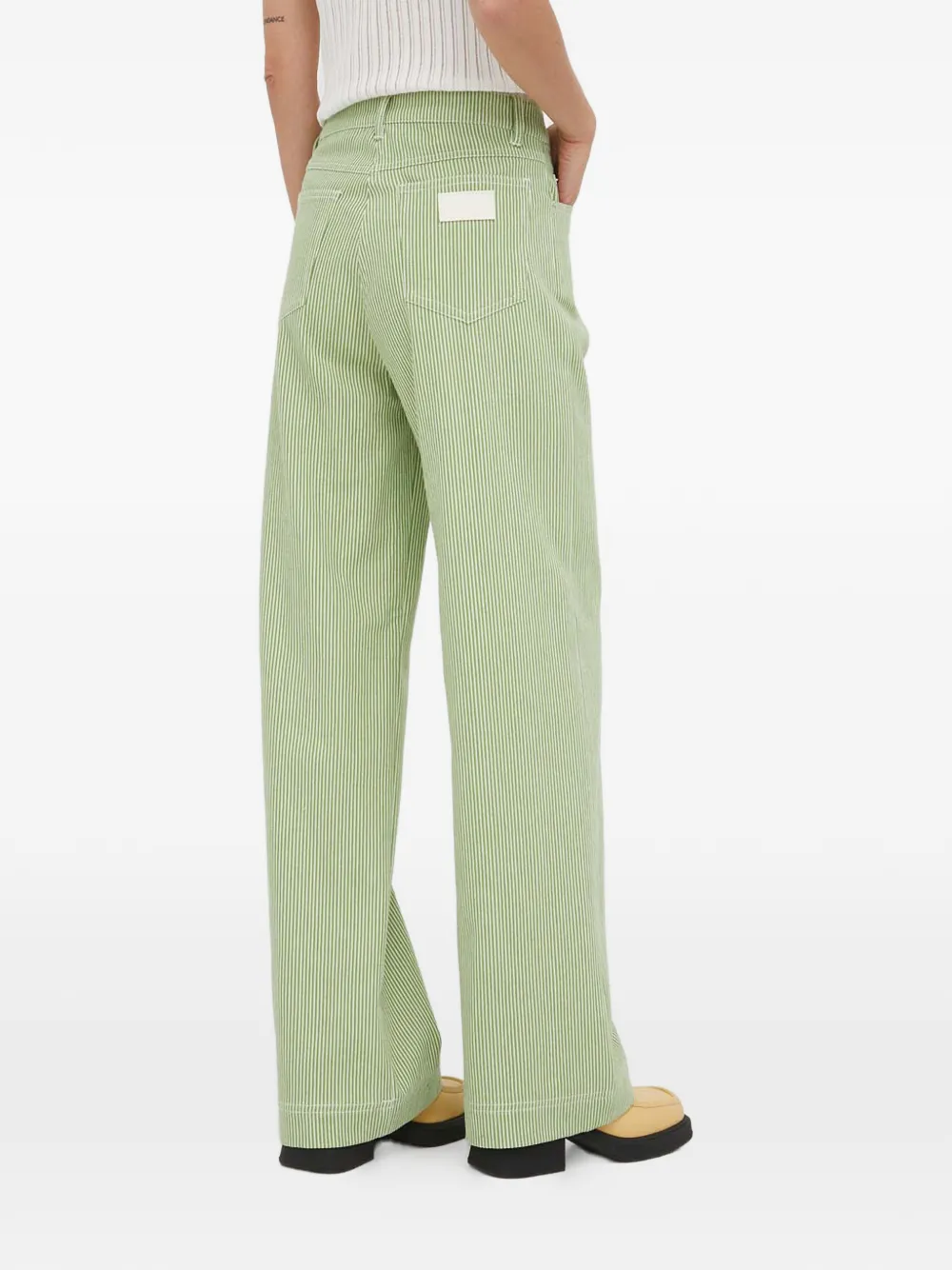 Зеленый с полосатым узором, шлевки для ремня, пять карманов, нашивка