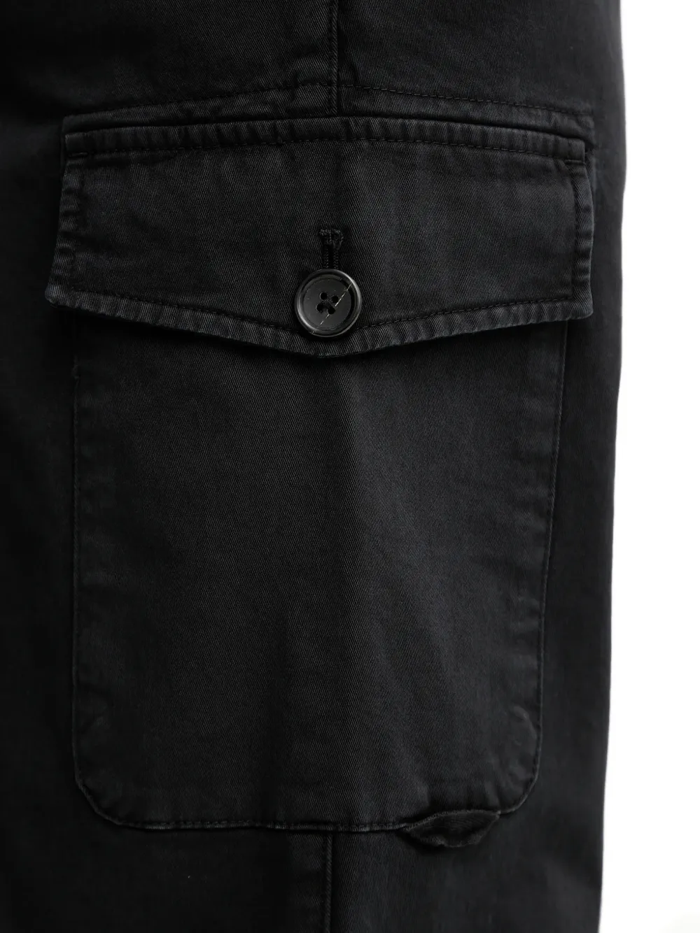 Черные боковые карманы карго, шлевки для ремня, застежка на пуговицу