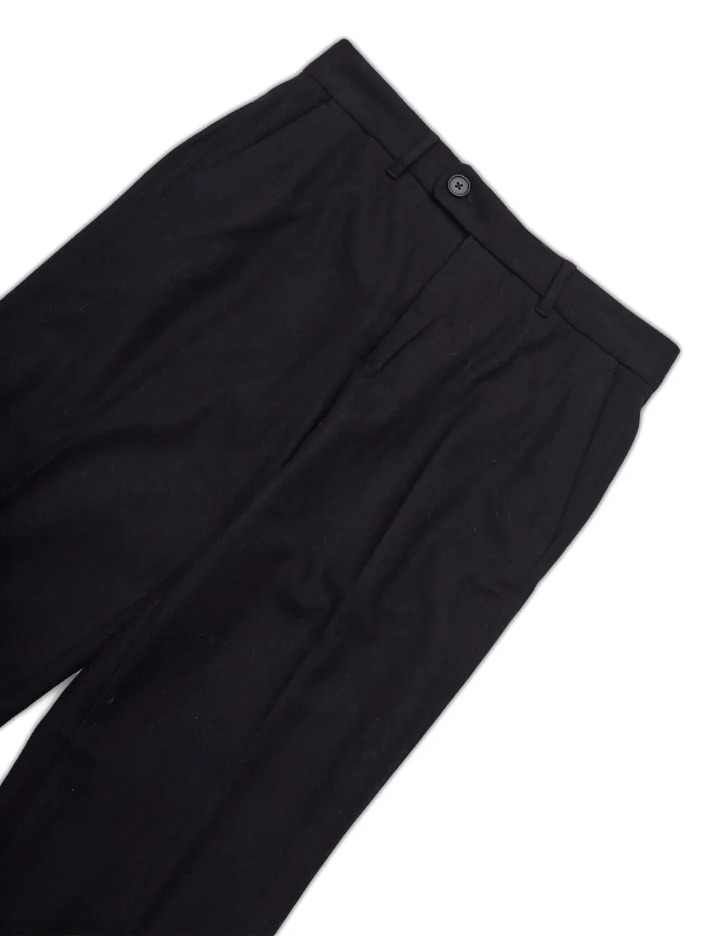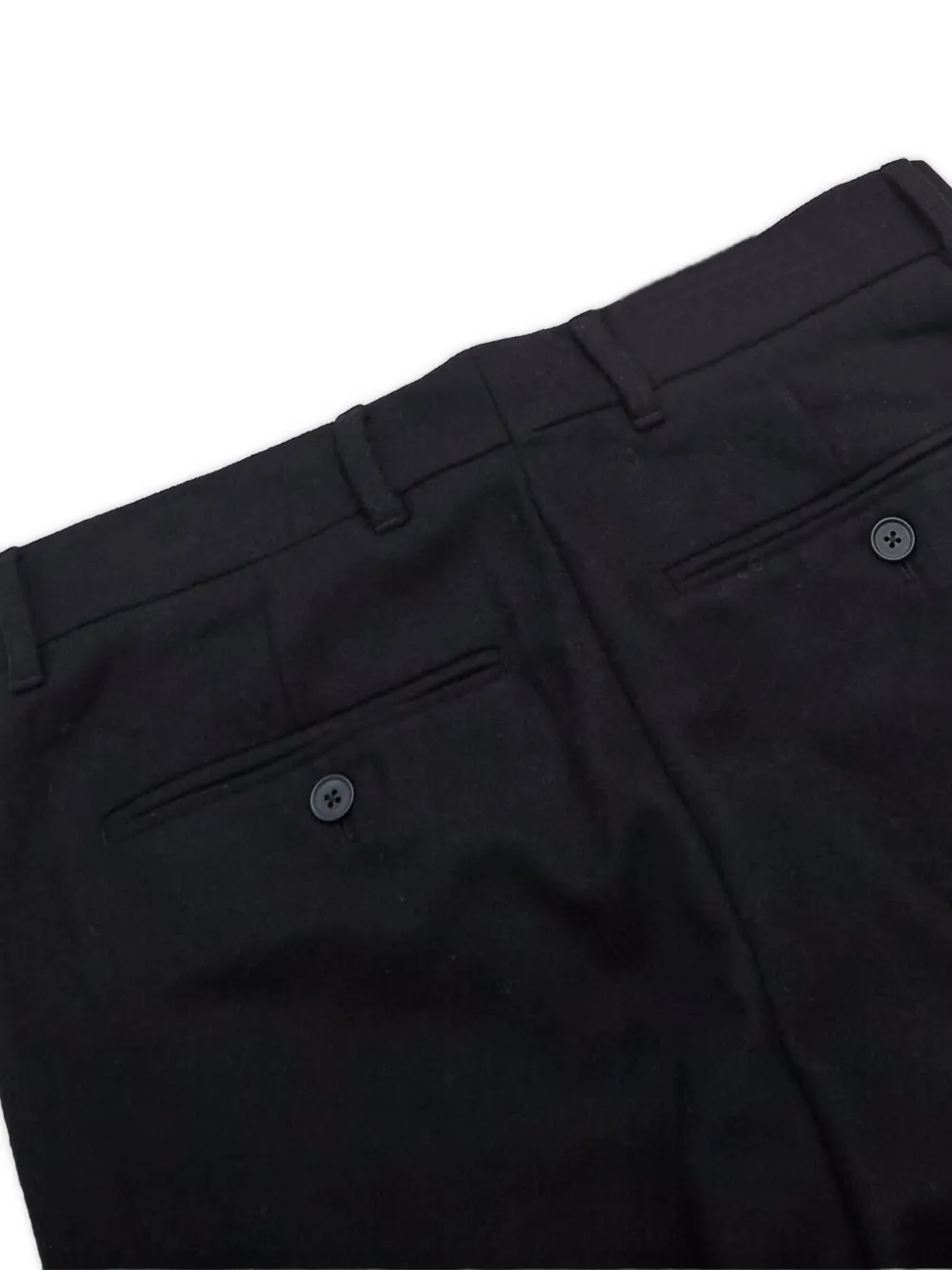 Черные, застежка на пуговицу и молнию спереди, шлевки для ремня