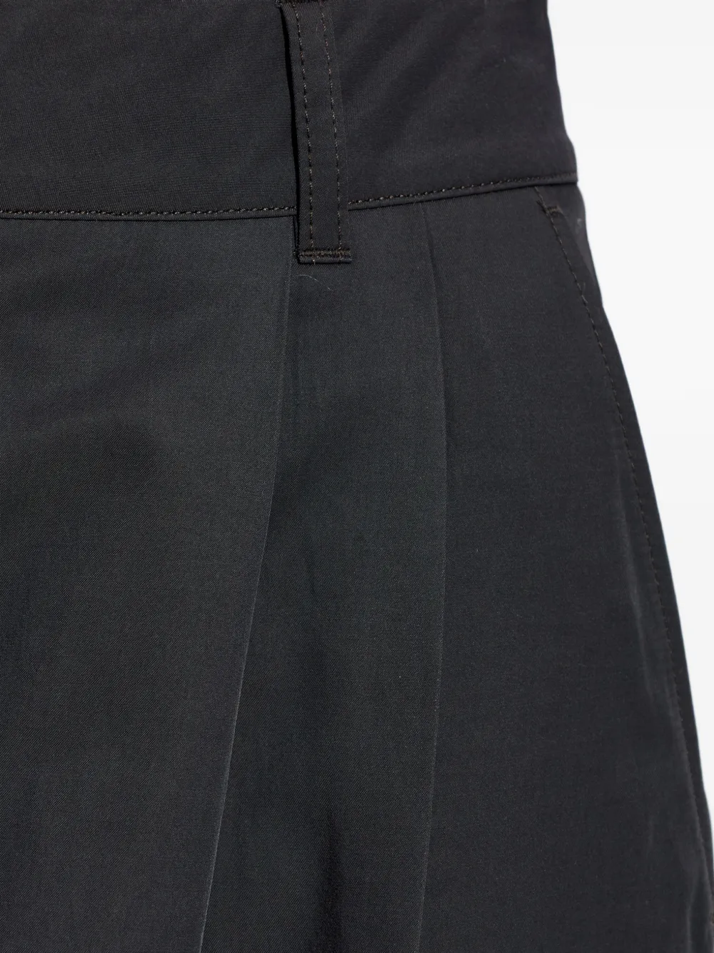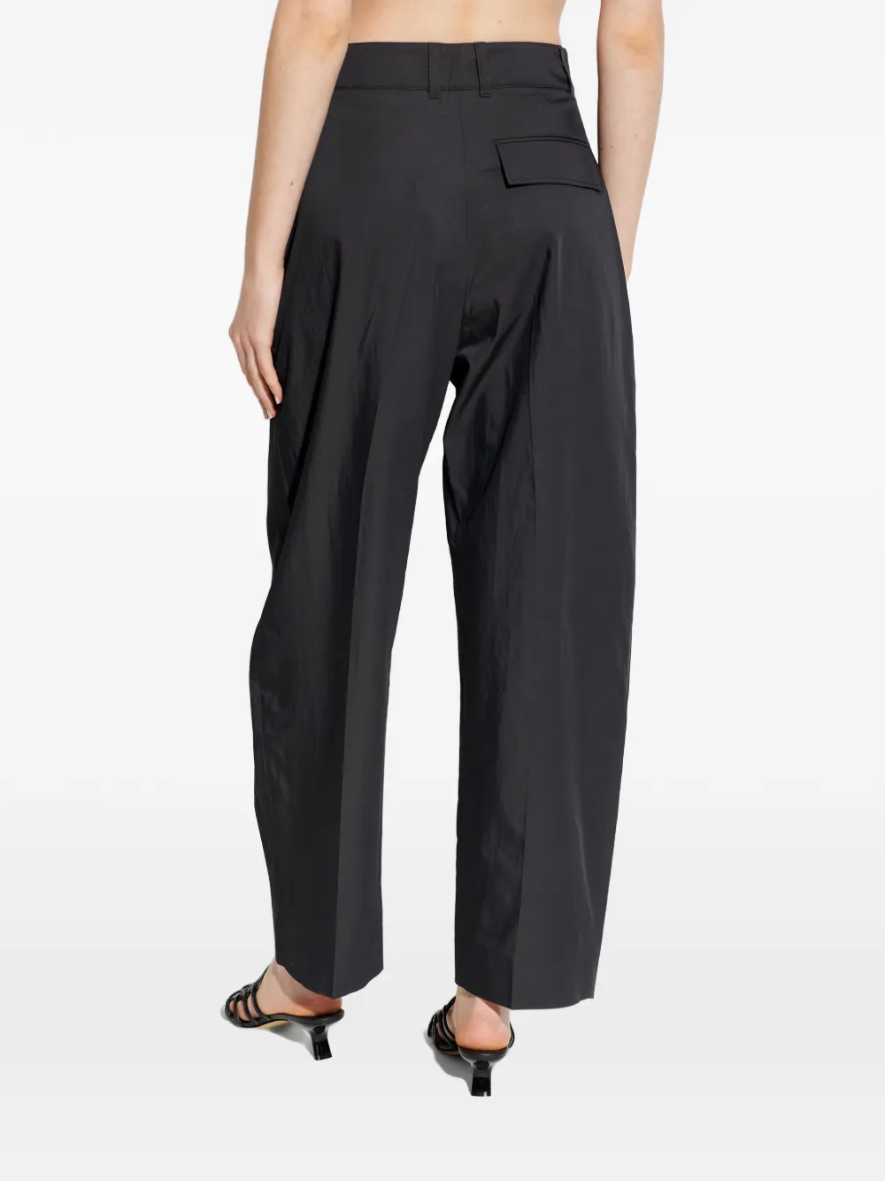 Черные плиссированные брюки с поясными шлевками, застежкой на пуговицу, задним прорезным карманом и широкими штанинами