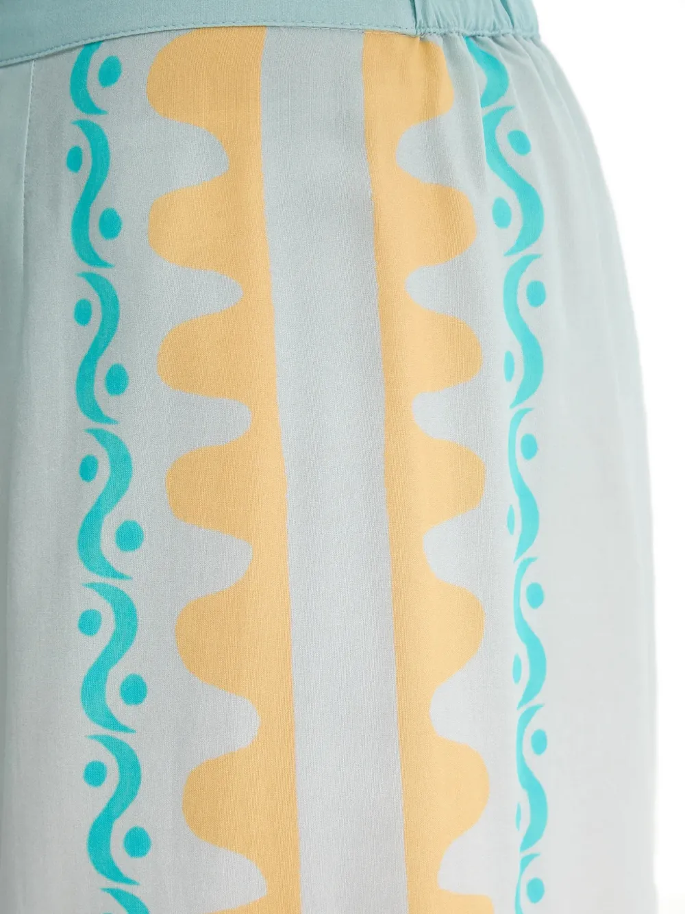 Синие широкие брюки с графическим принтом, эластичным поясом и боковой полосой