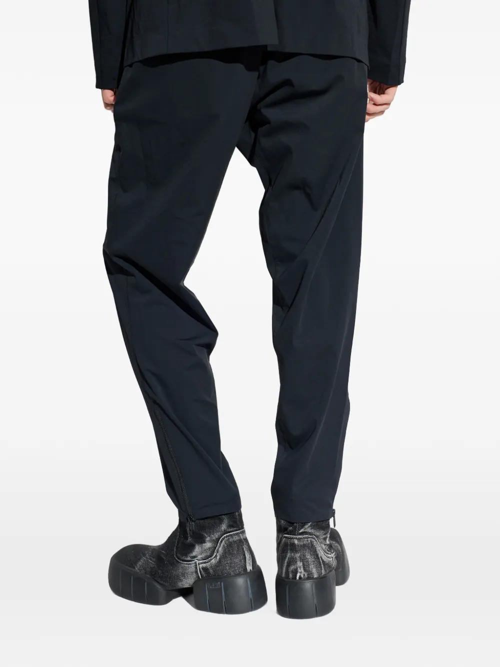 Черные брюки с эластичным поясом и прорезным карманом