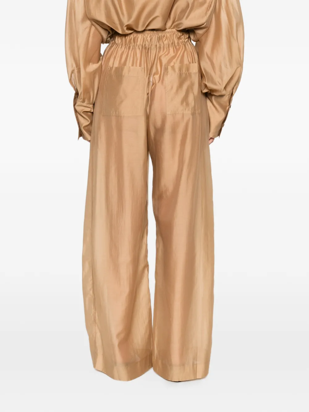 Светло-коричневые широкие брюки свободного кроя с эластичным поясом
