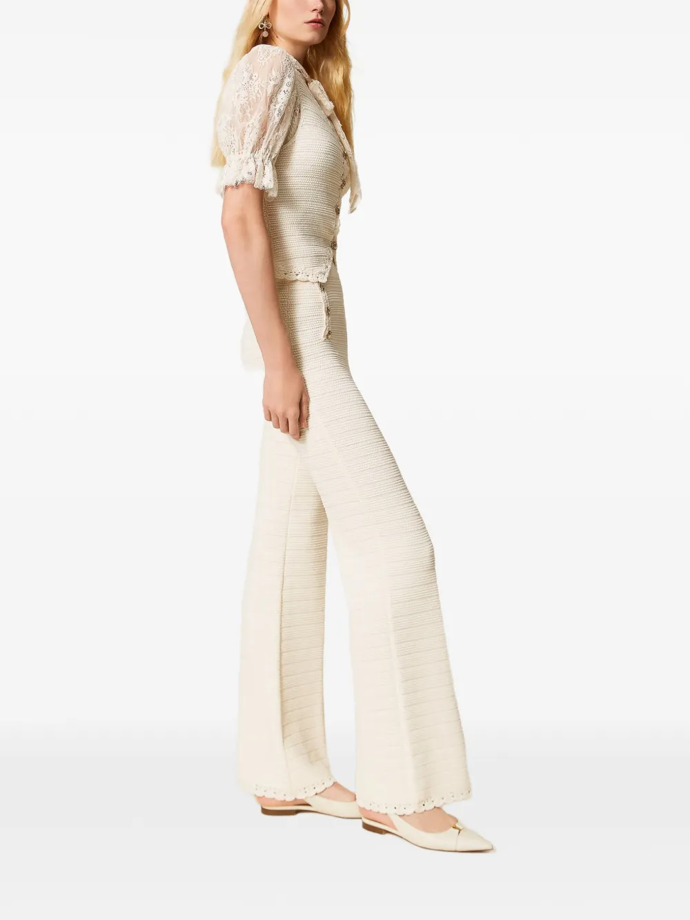 Брюки в технике кроше Twinset, бежевый