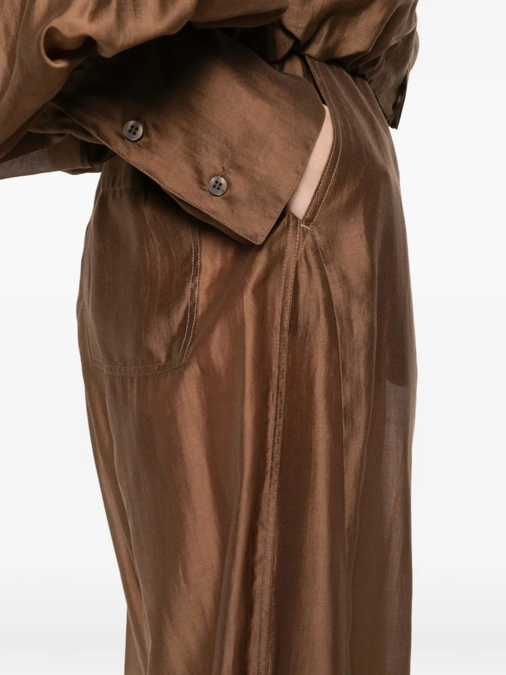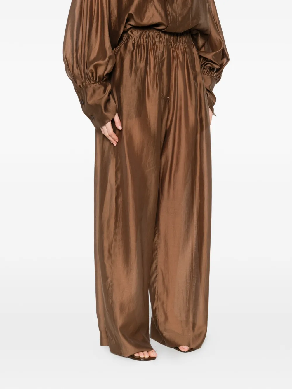 Шоколадные широкие брюки со сборкой на талии