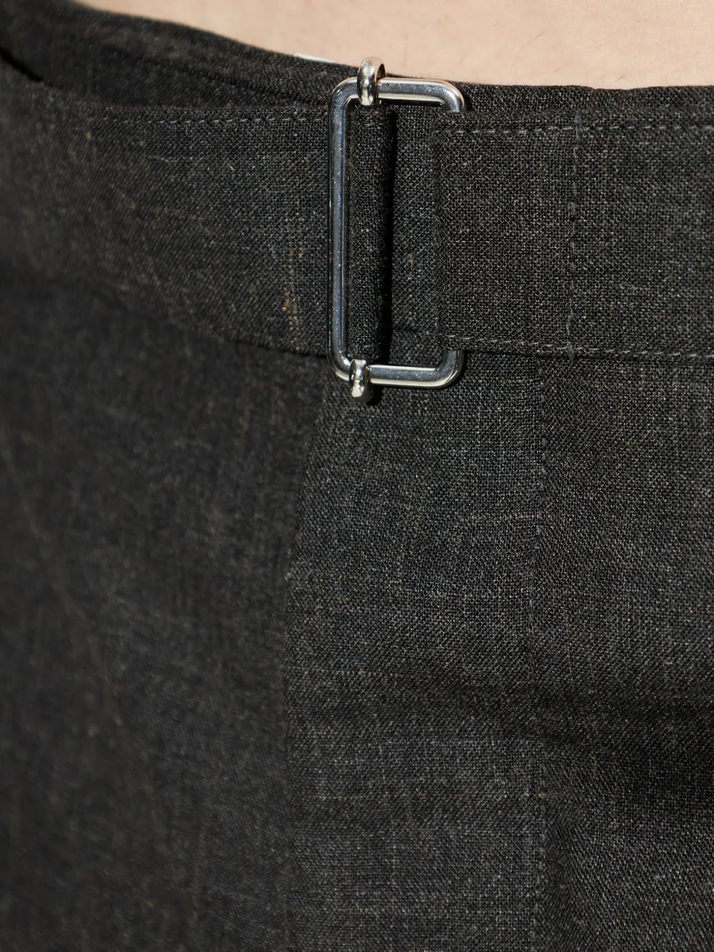 Антрацитово-серый, боковой прорезной карман, задние карманы с листочкой, шлевки для ремня