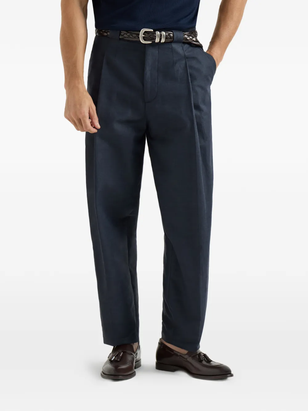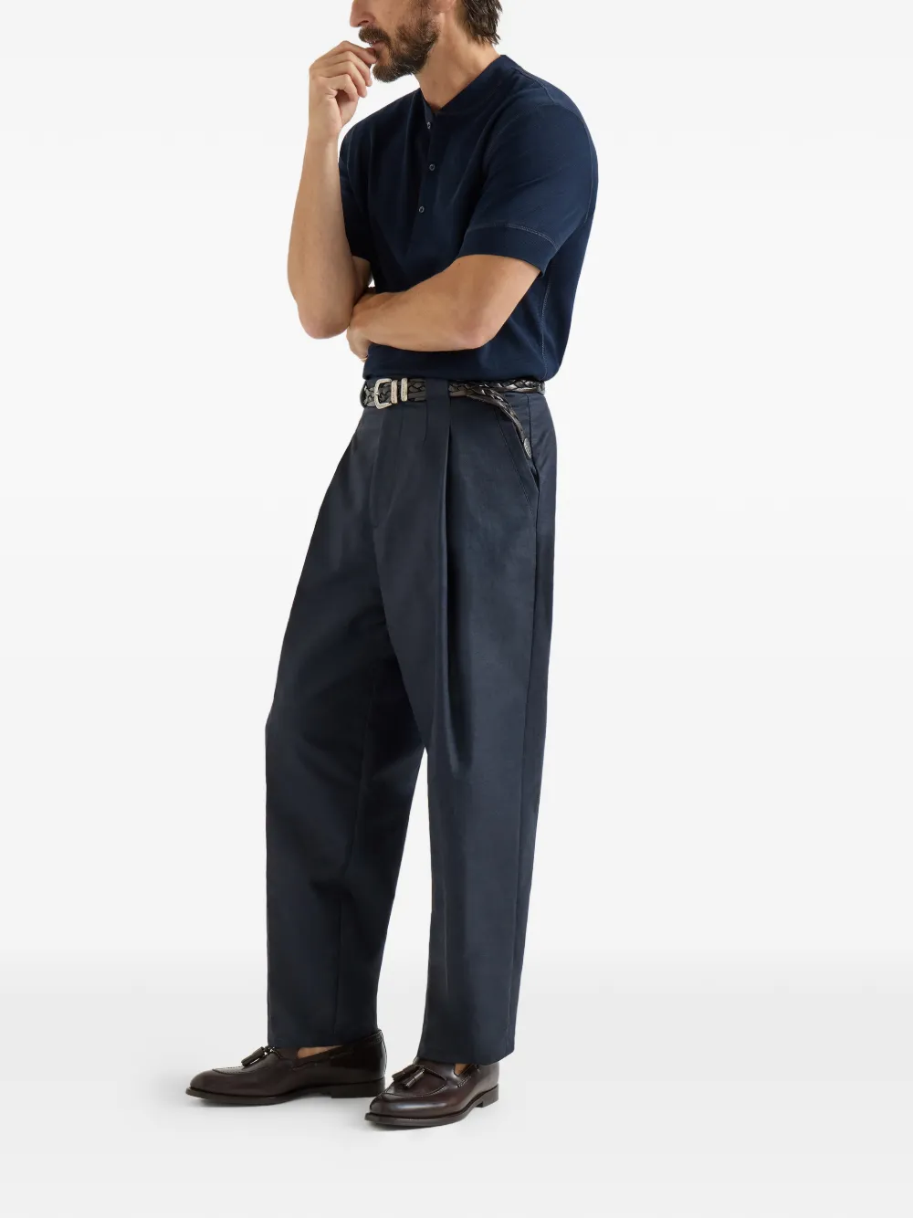 Брюки panama со складками Brunello Cucinelli, синий