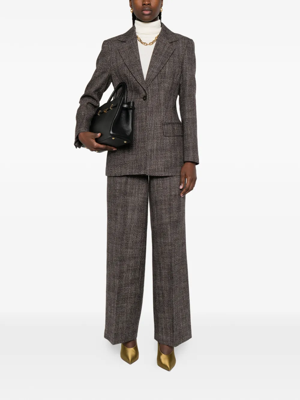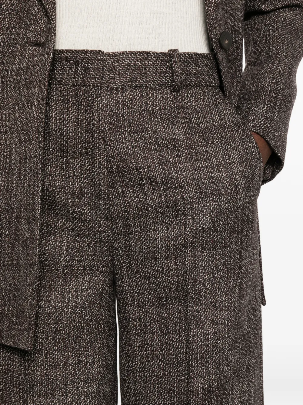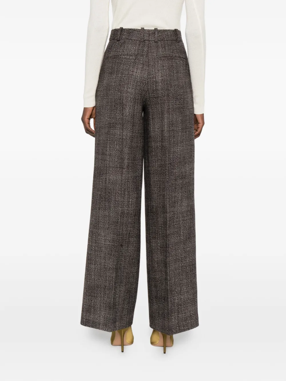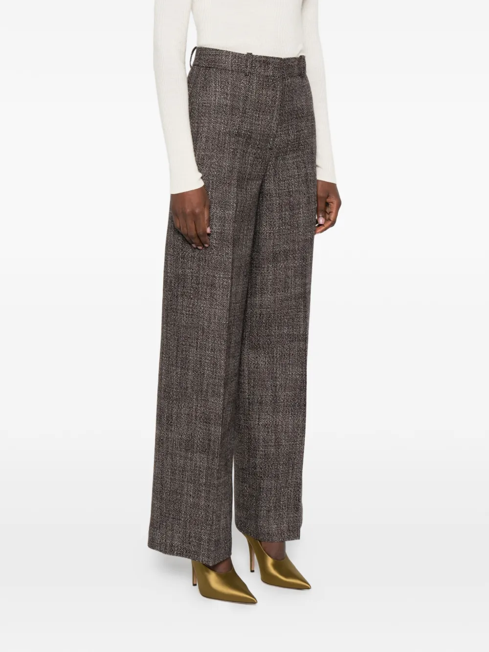 Коричневые брюки с узором "елочка", шлевками для ремня, широкими штанинами, скрытой застежкой, стандартного кроя