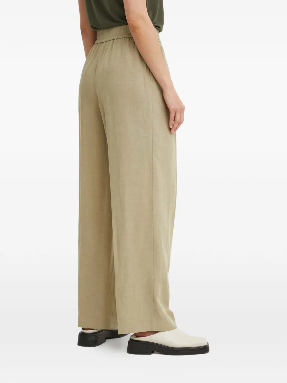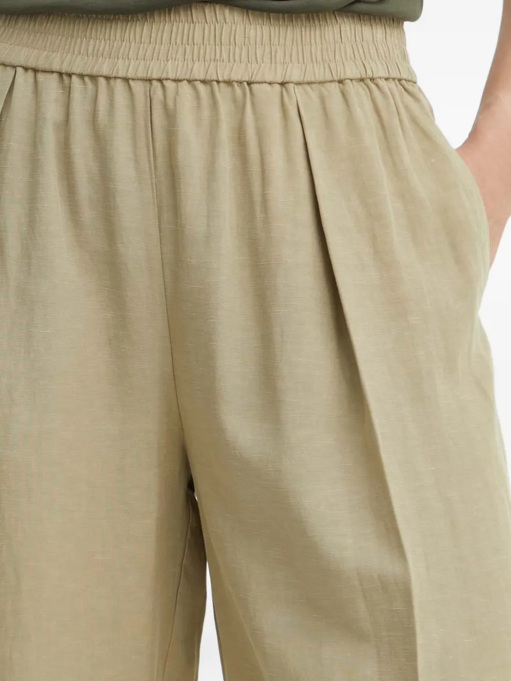 Светло-коричневые широкие брюки с плиссированными деталями, эластичным поясом и боковыми прорезными карманами