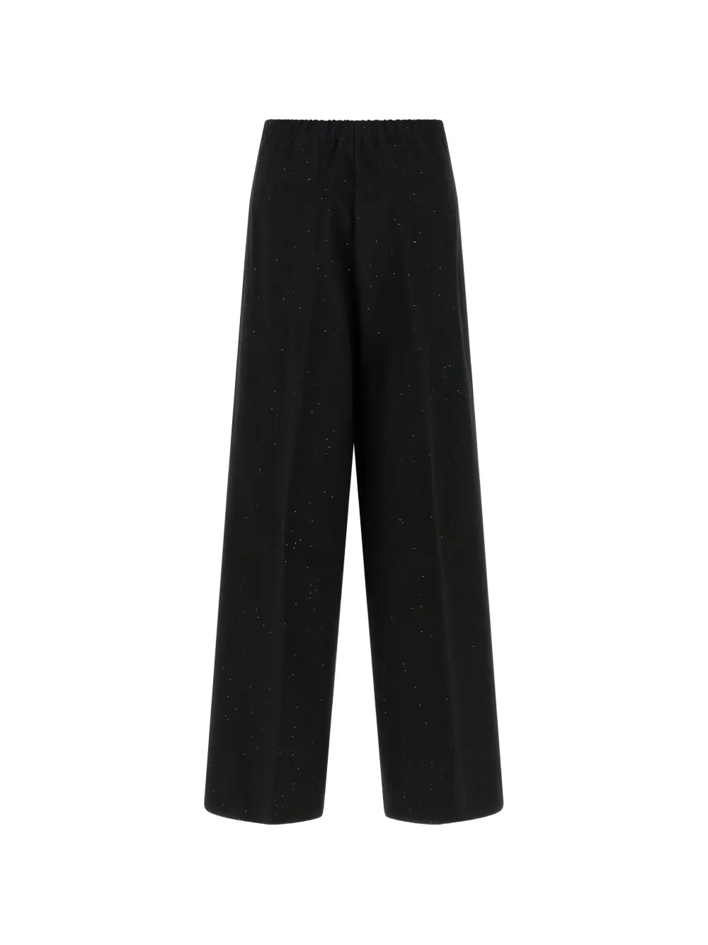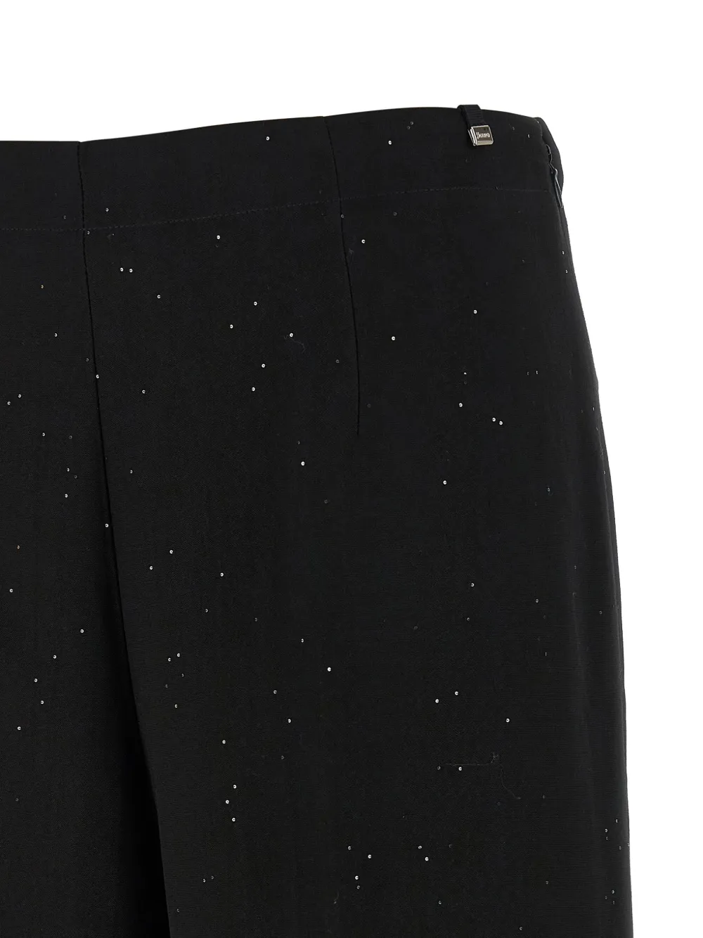 Черные пайетки, эластичный пояс сзади, широкие штанины, застежка-молния