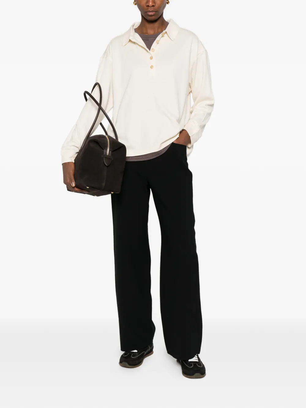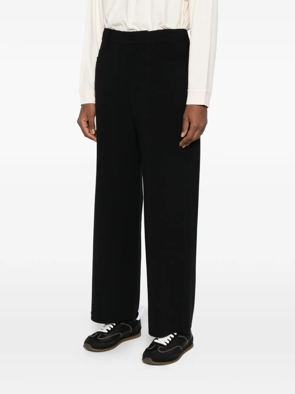 Черные широкие брюки с шлевками для ремня и прорезными карманами
