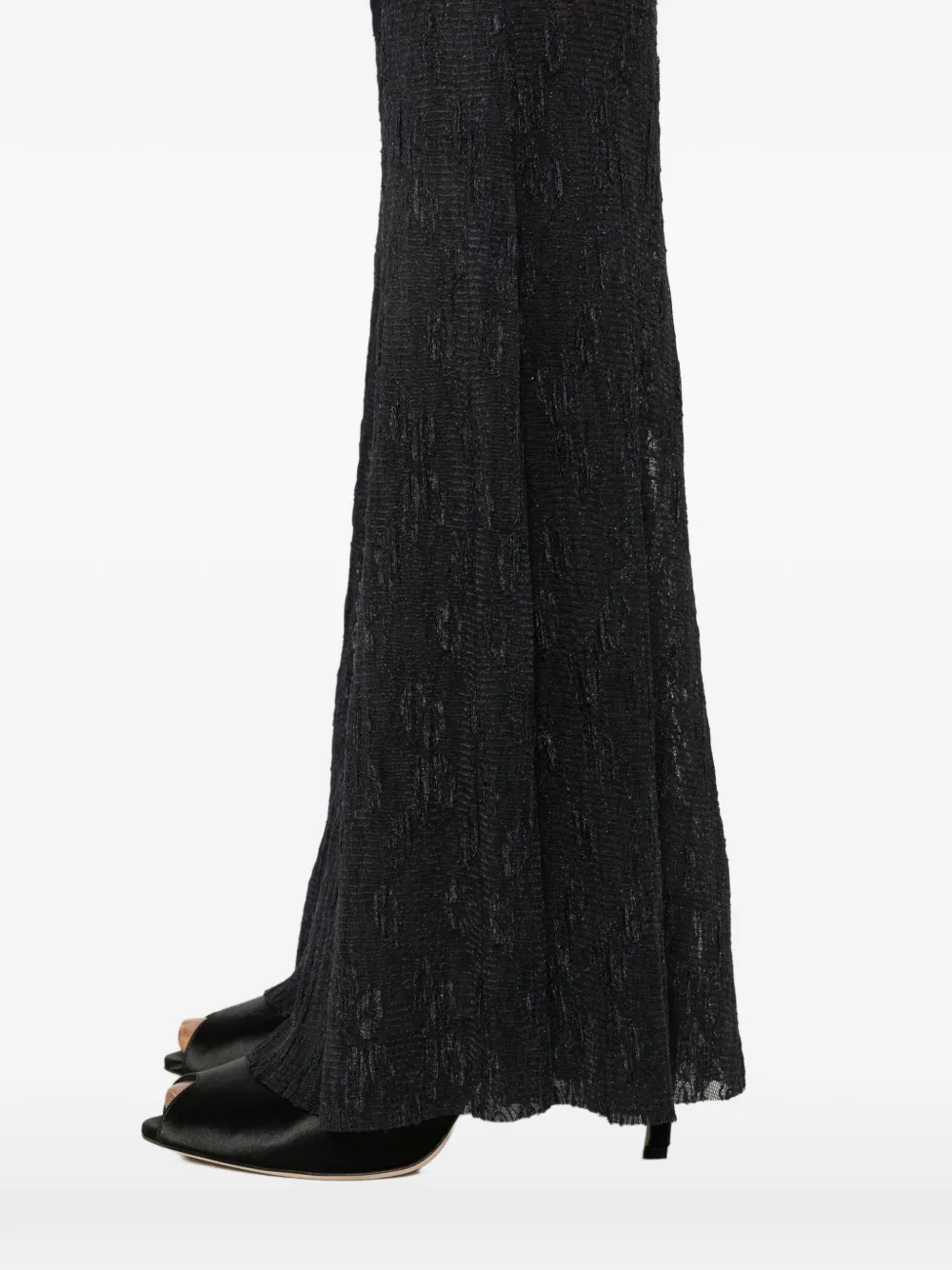 Черная фактурная ткань, расклешенный низ