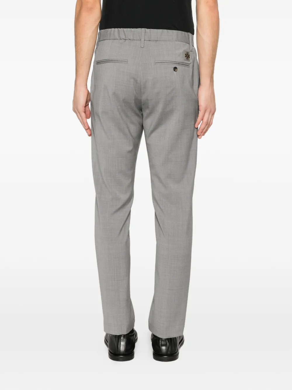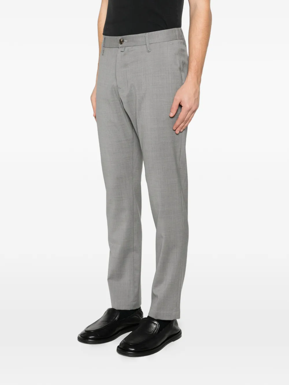 Серый, приталенный дизайн, шлевки для ремня, застежка на пуговицу, прорезные карманы