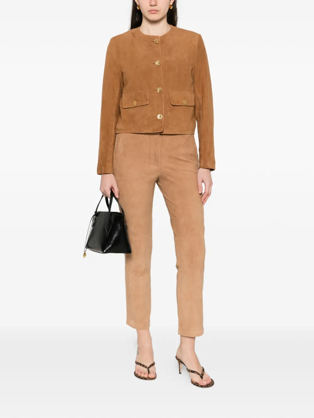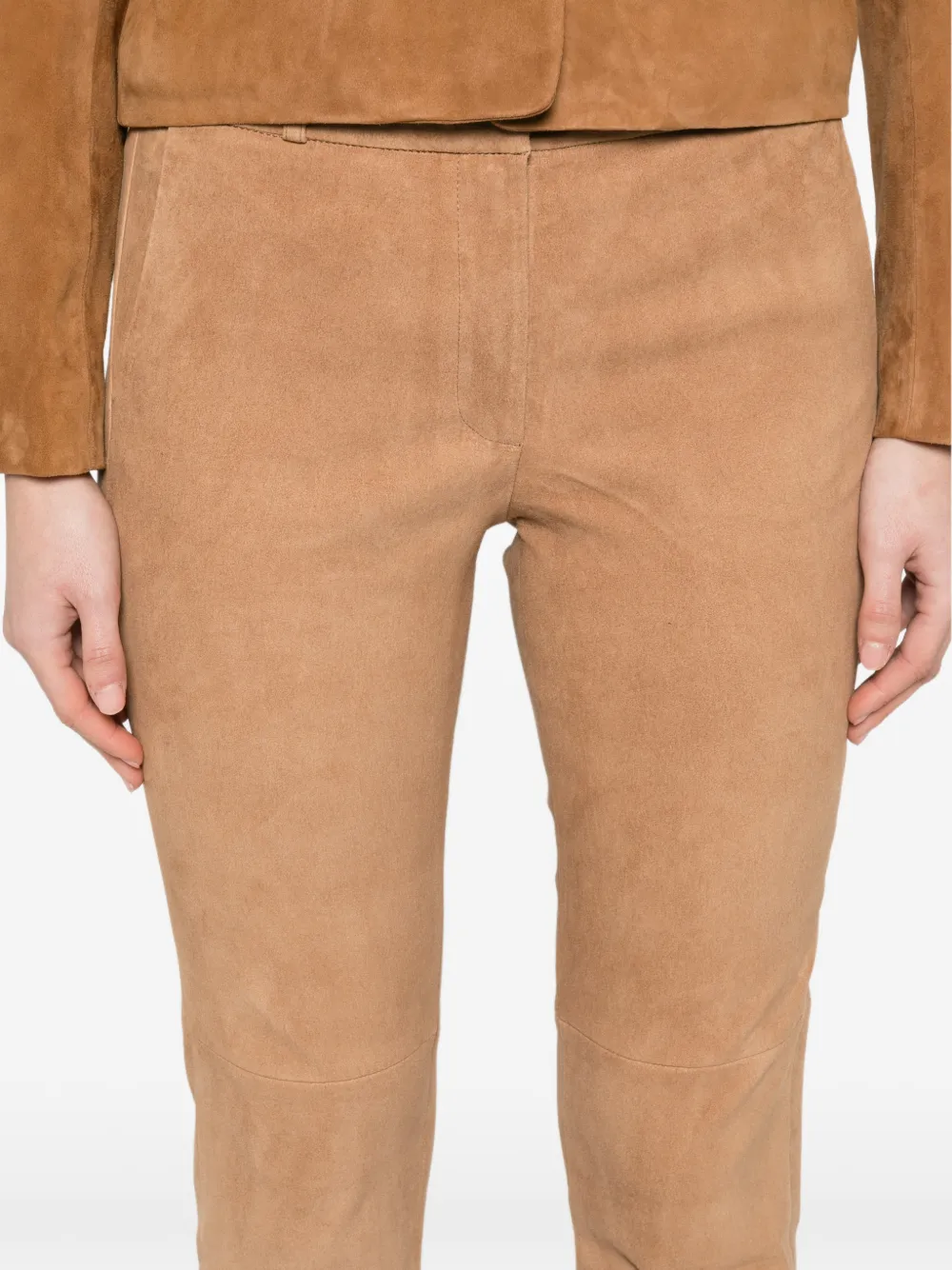 Прямые брюки цвета мокко с панелями, шлевками для ремня и прорезными карманами