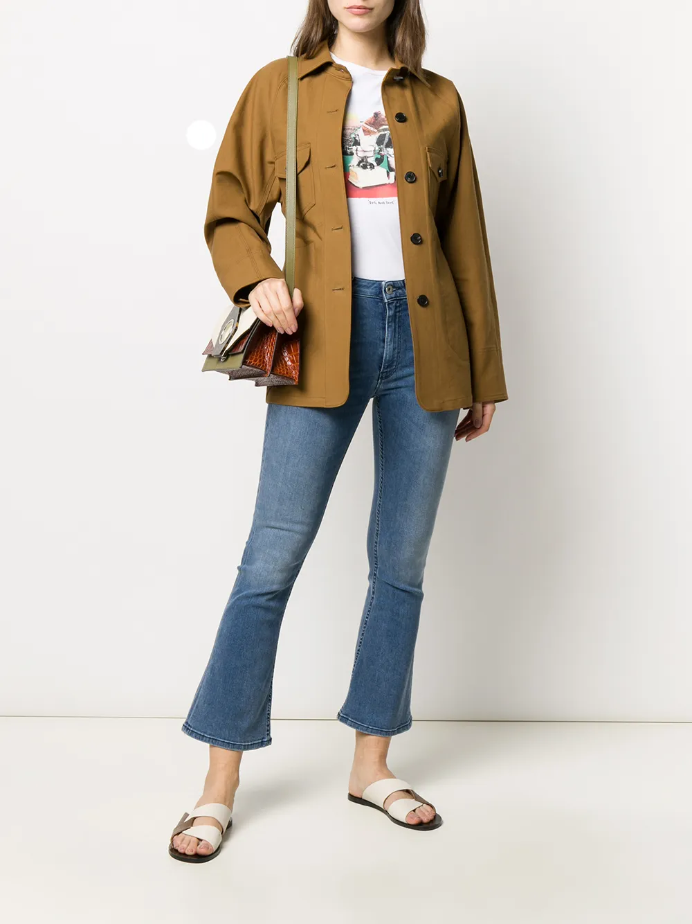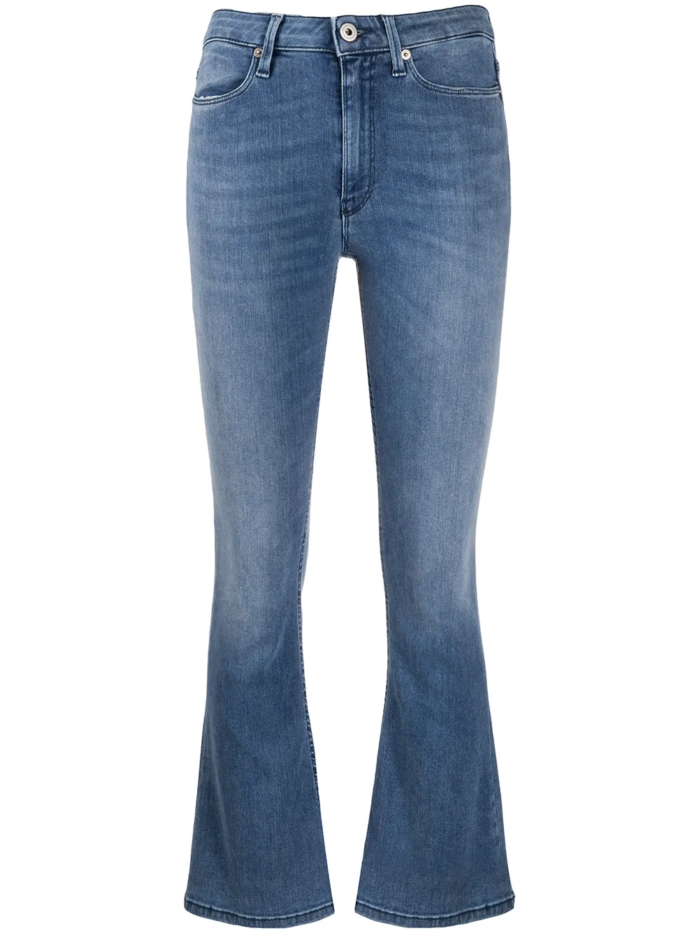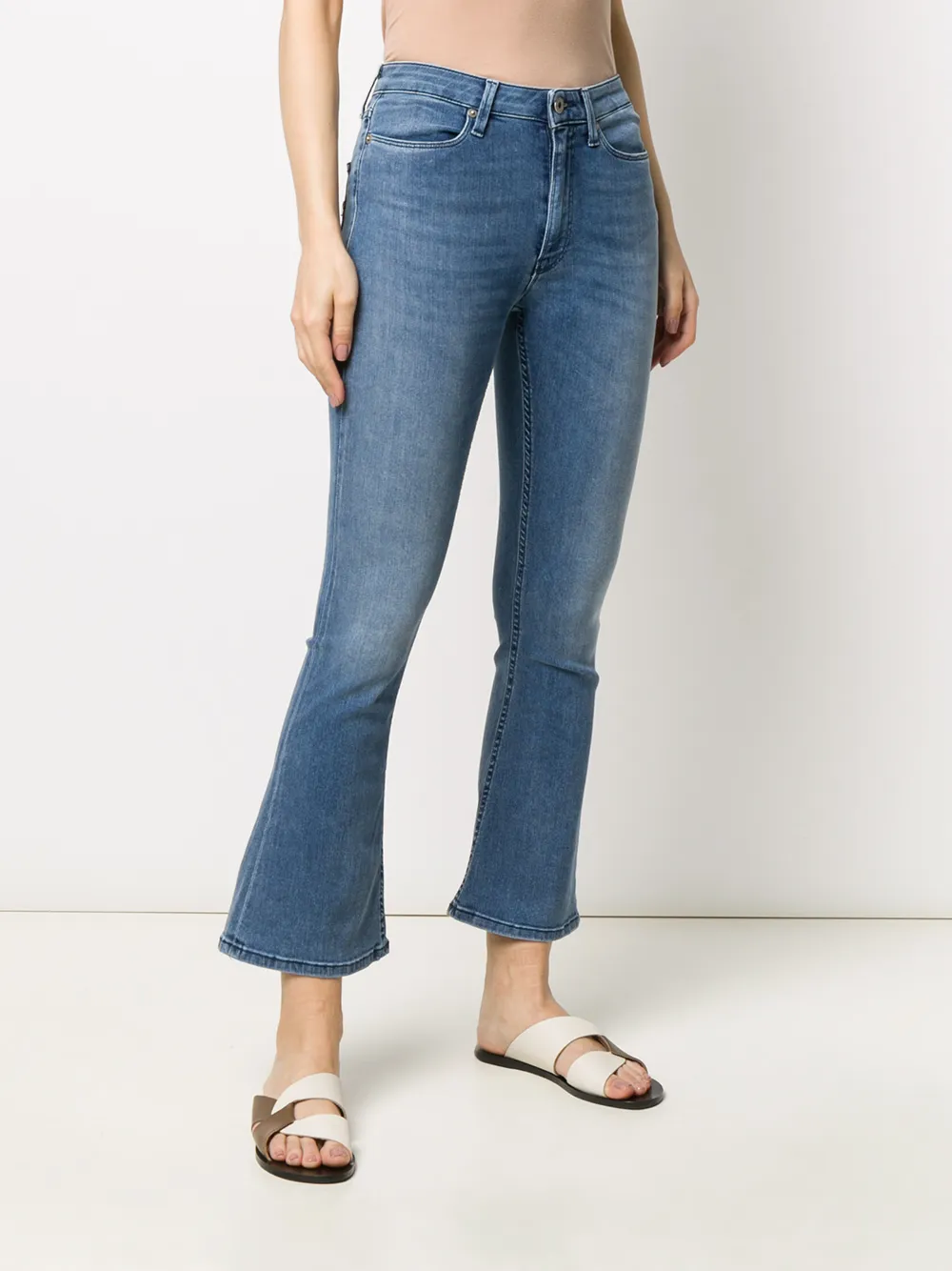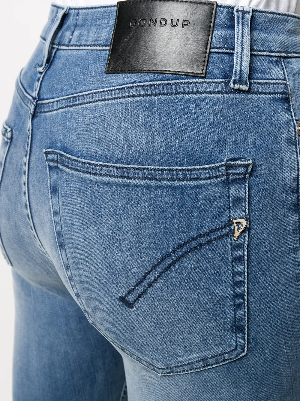 Укороченные брюки кроя слим от Dondup. Слегка расклешенный стиль bootcut, расклешенный силуэт, ширинка на молнии с пуговицей, пояс с петлями для ремня и классическая пятикарманная модель.