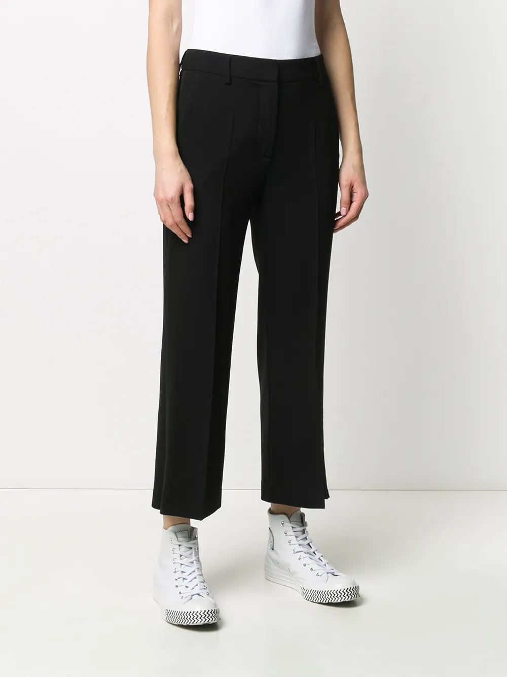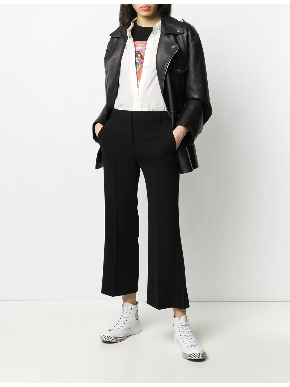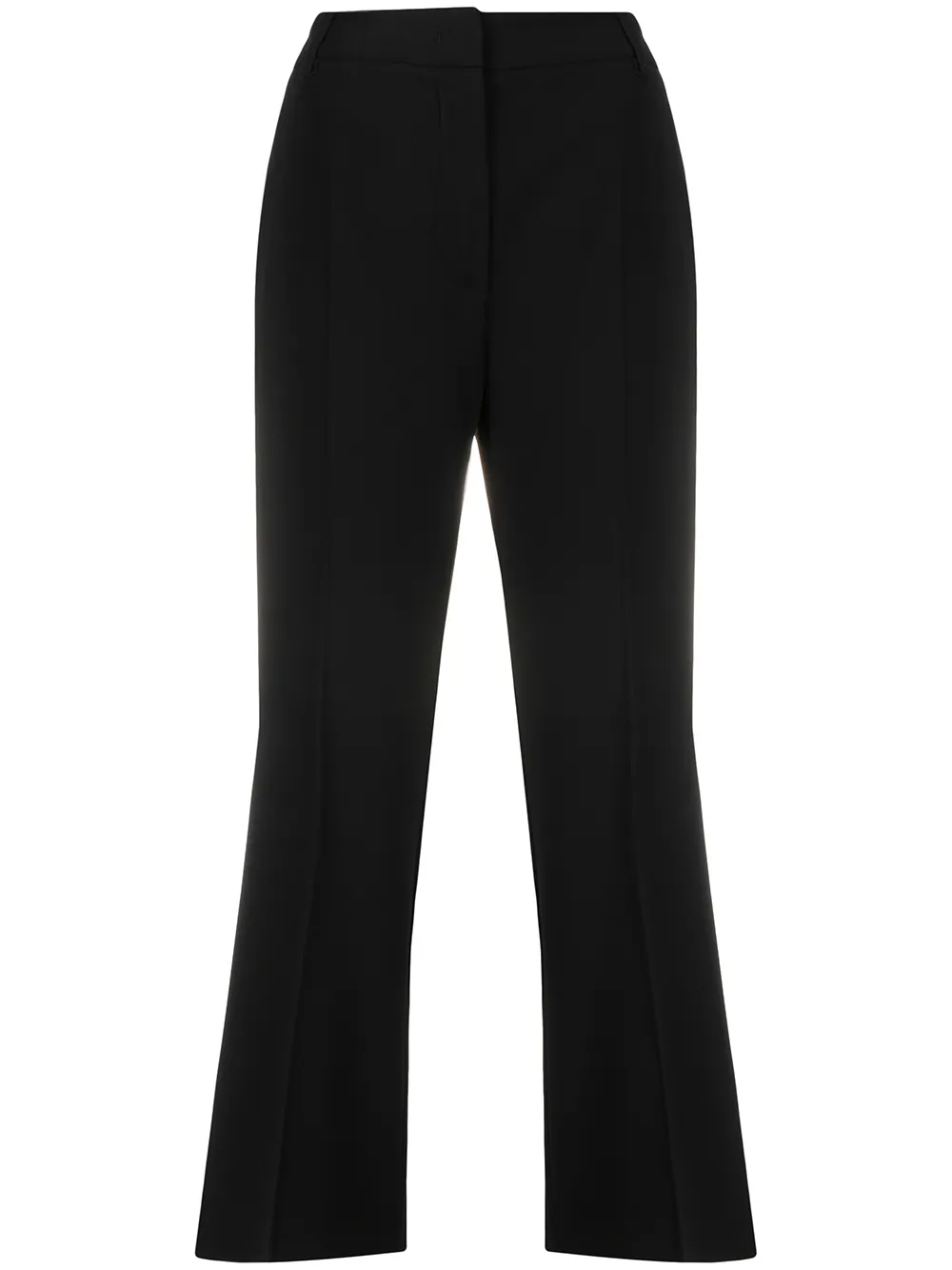 Укороченные брюки Bootcut от Alberto Biani. Завышенная посадка, пояс с петлями для ремня, потайная застежка спереди, прорезные карманы по бокам, задние карманы с листочкой и складки.
