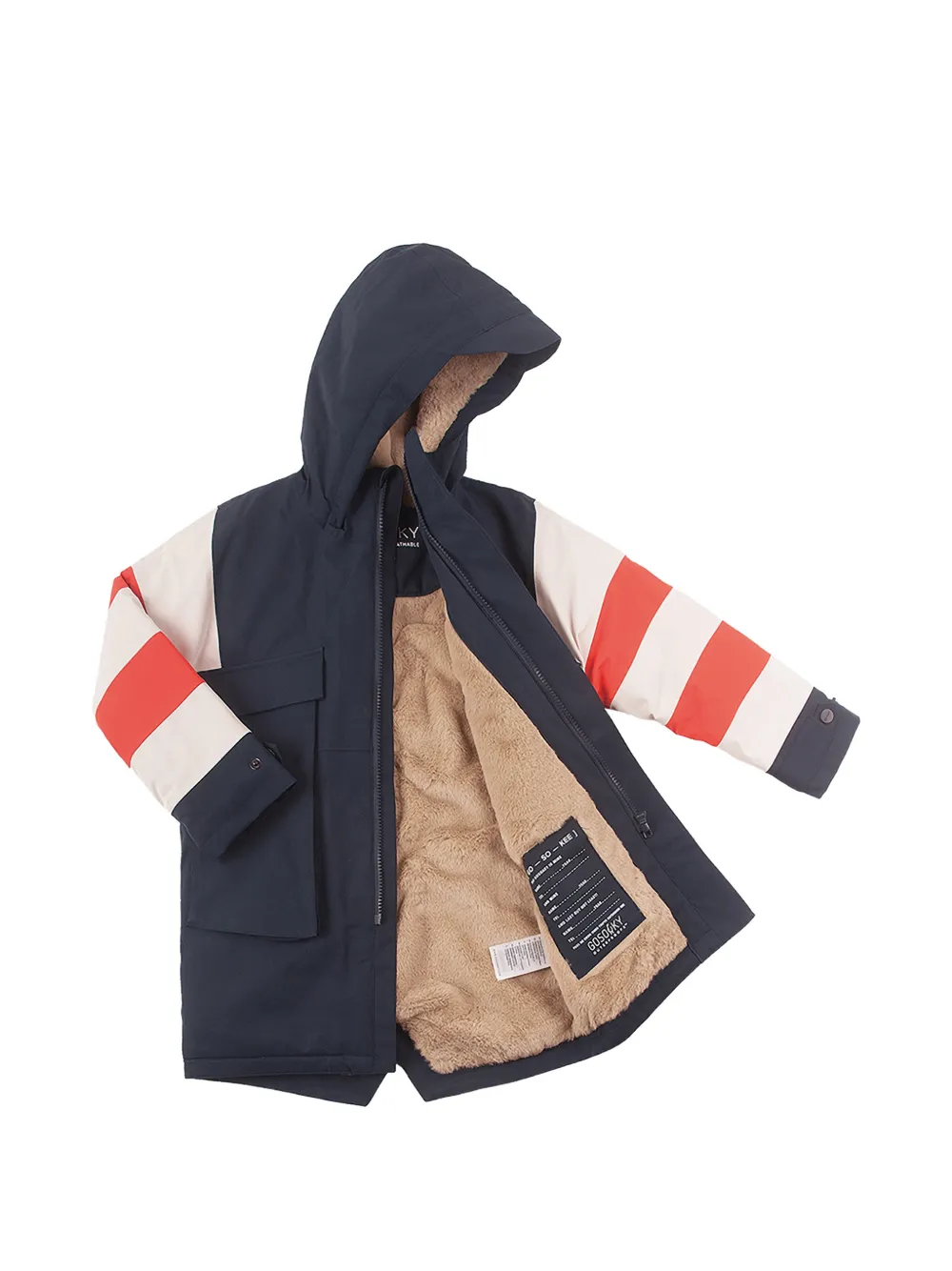 Полосатая куртка с капюшоном из лисы Gosoaky, синий