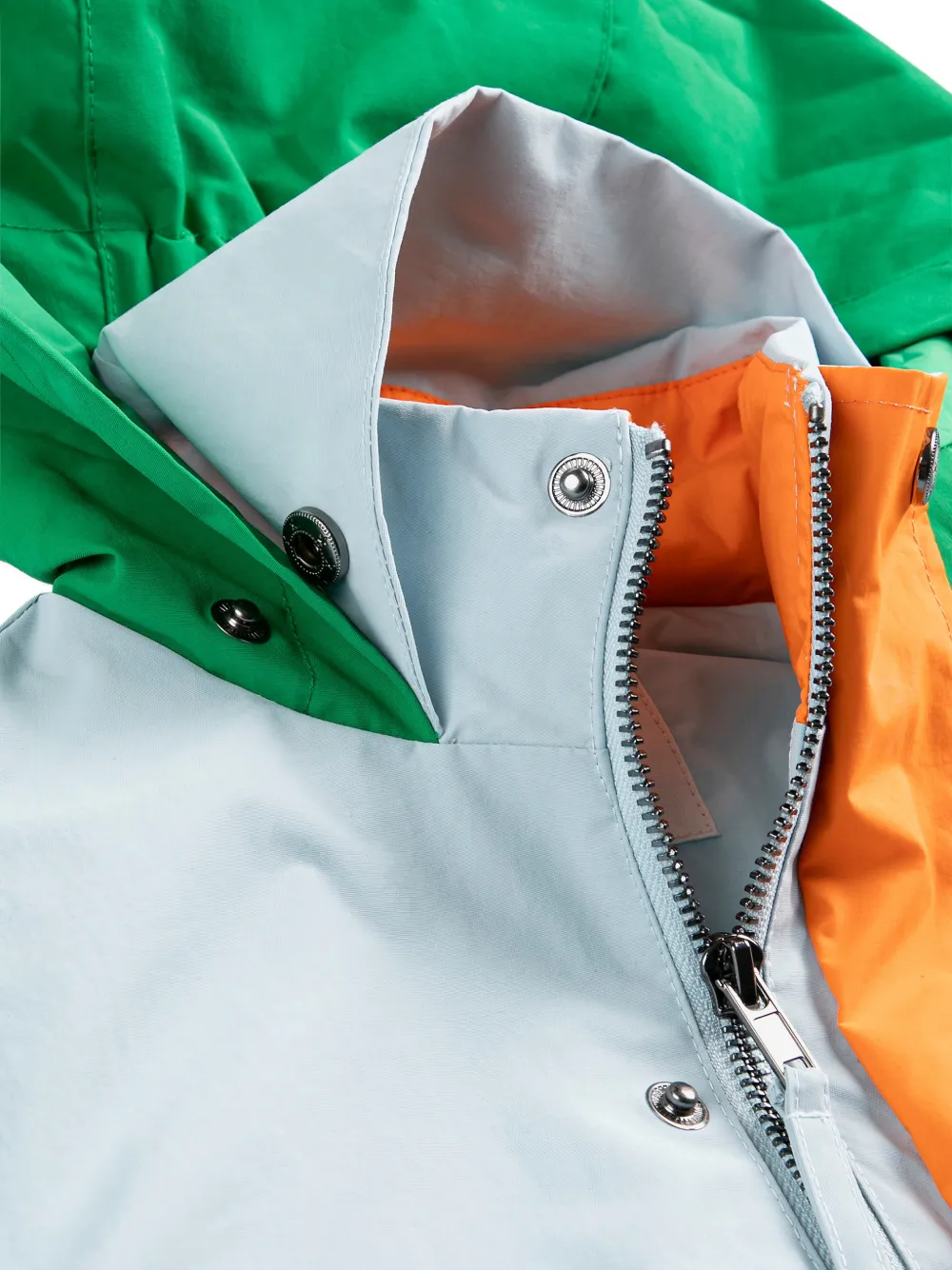 Синий цвет, многослойный дизайн, застежка-молния, высокий воротник, длинные рукава