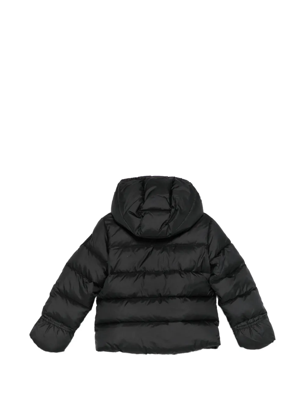 Черная стеганая куртка с капюшоном, застежкой на молнию, боковыми карманами и нашивкой с логотипом