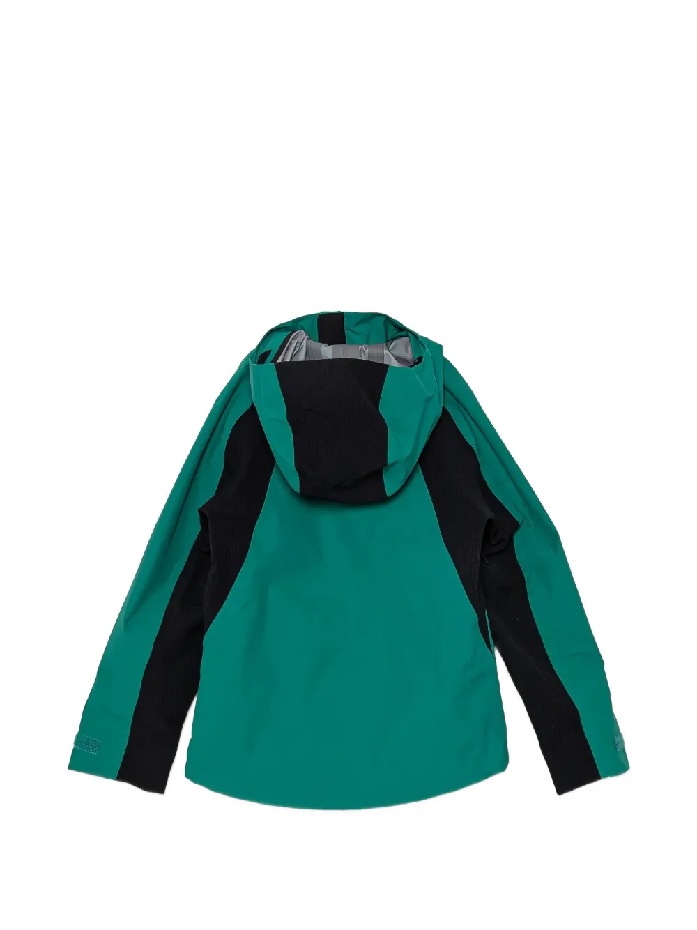 Сине-зеленый худи с логотипом, застежкой-молнией спереди, капюшоном, длинными рукавами и ребристыми деталями