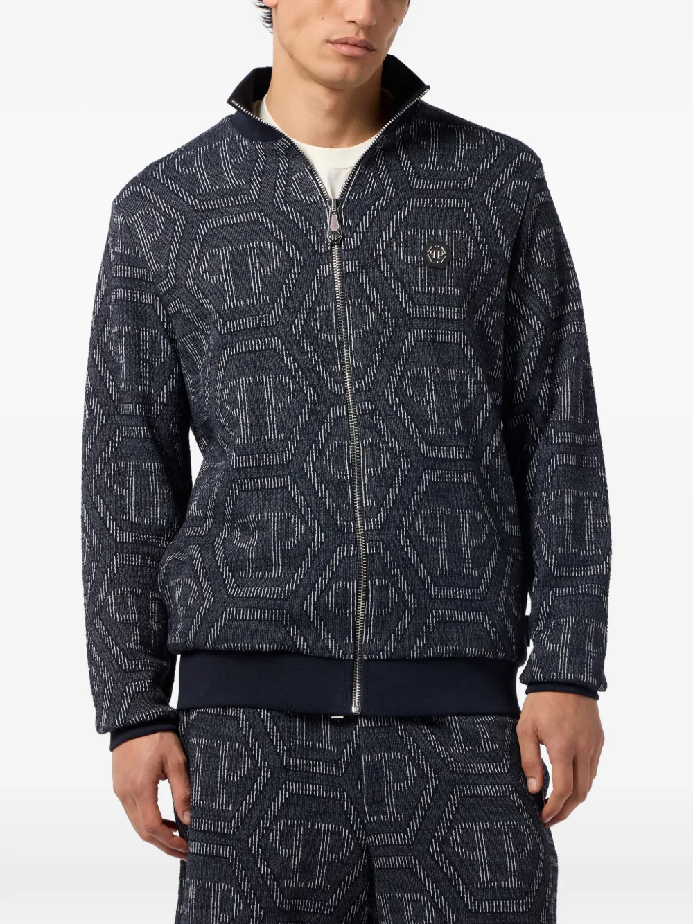 Жаккардовый жакет с монограммой Philipp Plein, синий