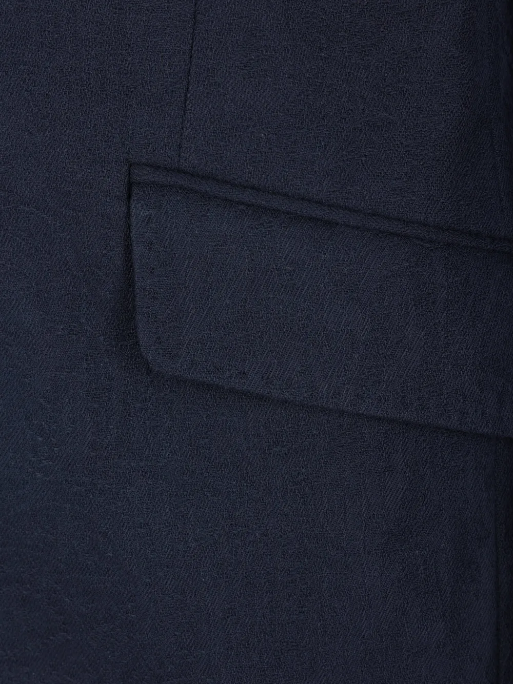 Синяя подкладка с принтом «пейсли», застежка на пуговицы, нагрудные карманы с клапанами, лацканы с вырезом, длинные рукава